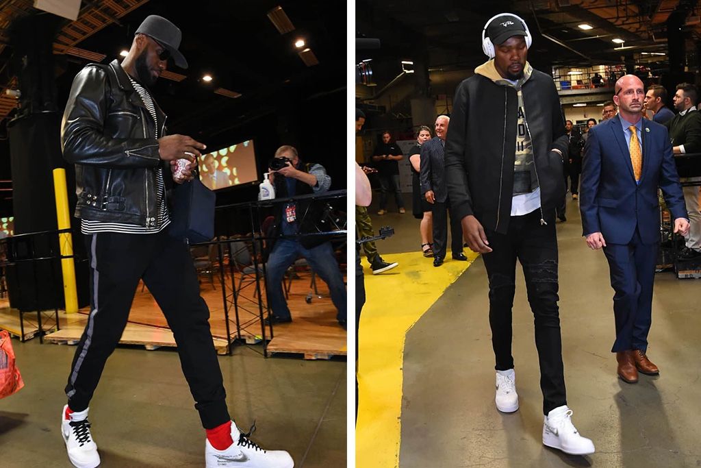 LeBron James e Kevin Durant con delle inedite OFF-WHITE x Nike Air Force 1 Prima di Gara 3 delle Finals i due hanno indossato una nuova versione della collaborazione tra Virgil Abloh e Nike
