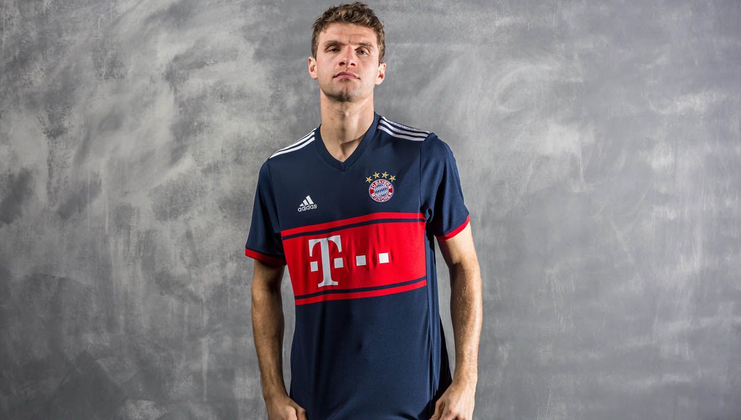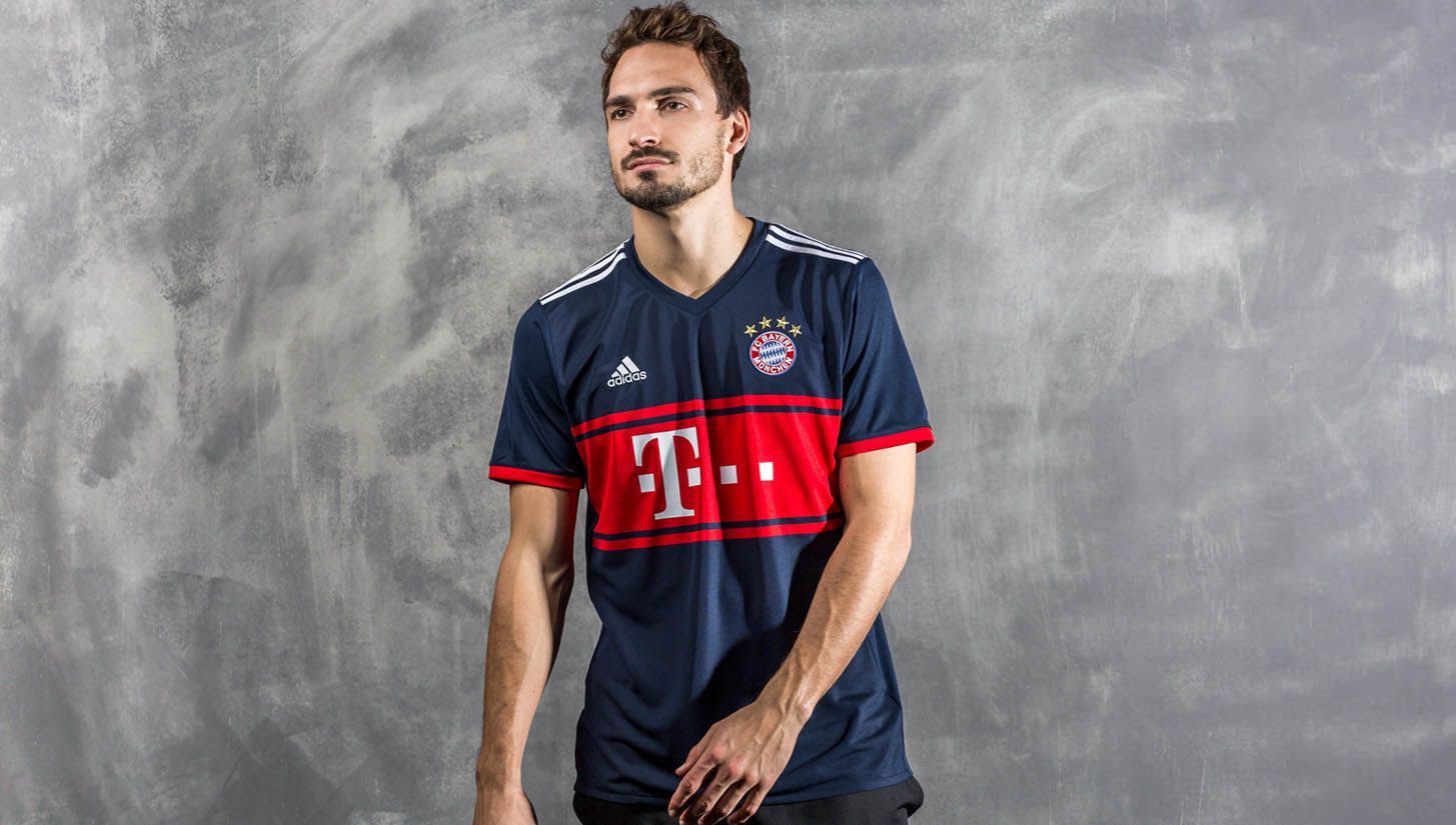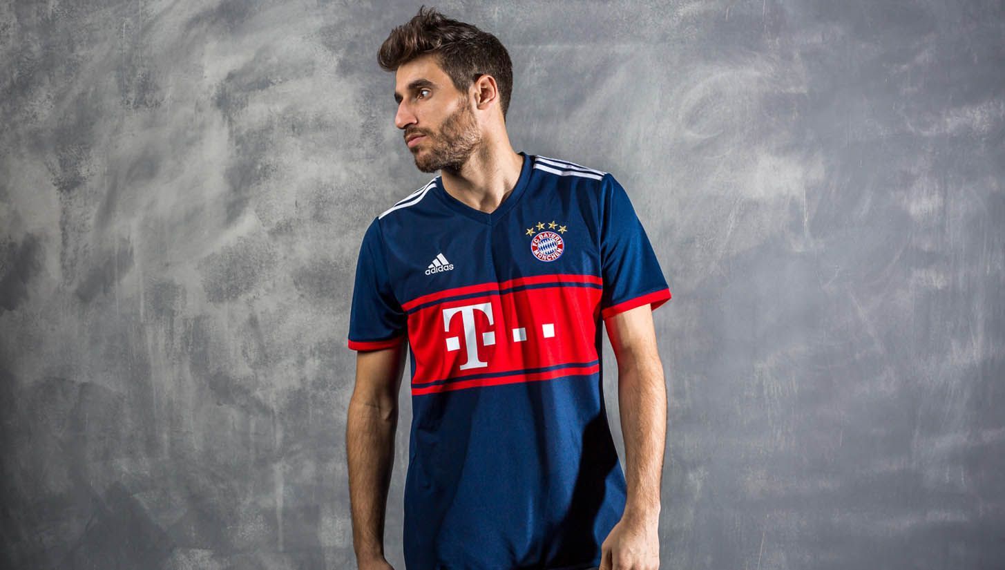 Questa maglia da trasferta del Bayern Monaco per la stagione 2017/18 prende spunto da un vecchio kit, utilizzato nel 1997. Al "Collegiate Navy", utilizzato come colore principale, si affianca il bianco - utilizzato per le three stripes sulle spalle, per il logo adidas sul petto e per il logo dello sponsor - e il rosso, che forma una banda centrale molto elegante e adorna il contorno delle maniche. La scritta "Mia San Mia" - che significa "Noi siamo noi" - è stampata in bianco sul retro della maglia, insieme al consueto nome della società. Il logo del club, leggermente rivisto e aggiustato recentemente, completa la parte frontale di un kit che noi riteniamo tra i più belli visti finora.