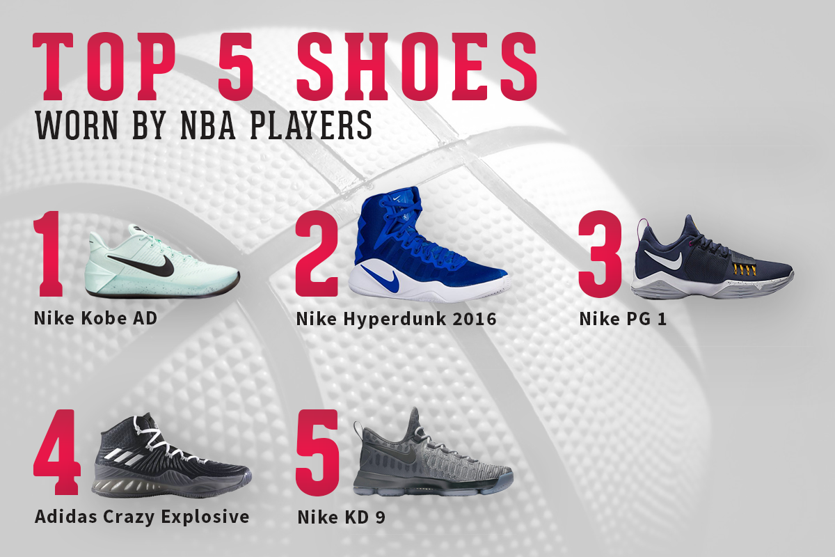 Le sneaker più usate dai giocatori NBA Le Nike Kobe AD vincono la classifica, mentre a livello di brand Nike domina su adidas e Jordan