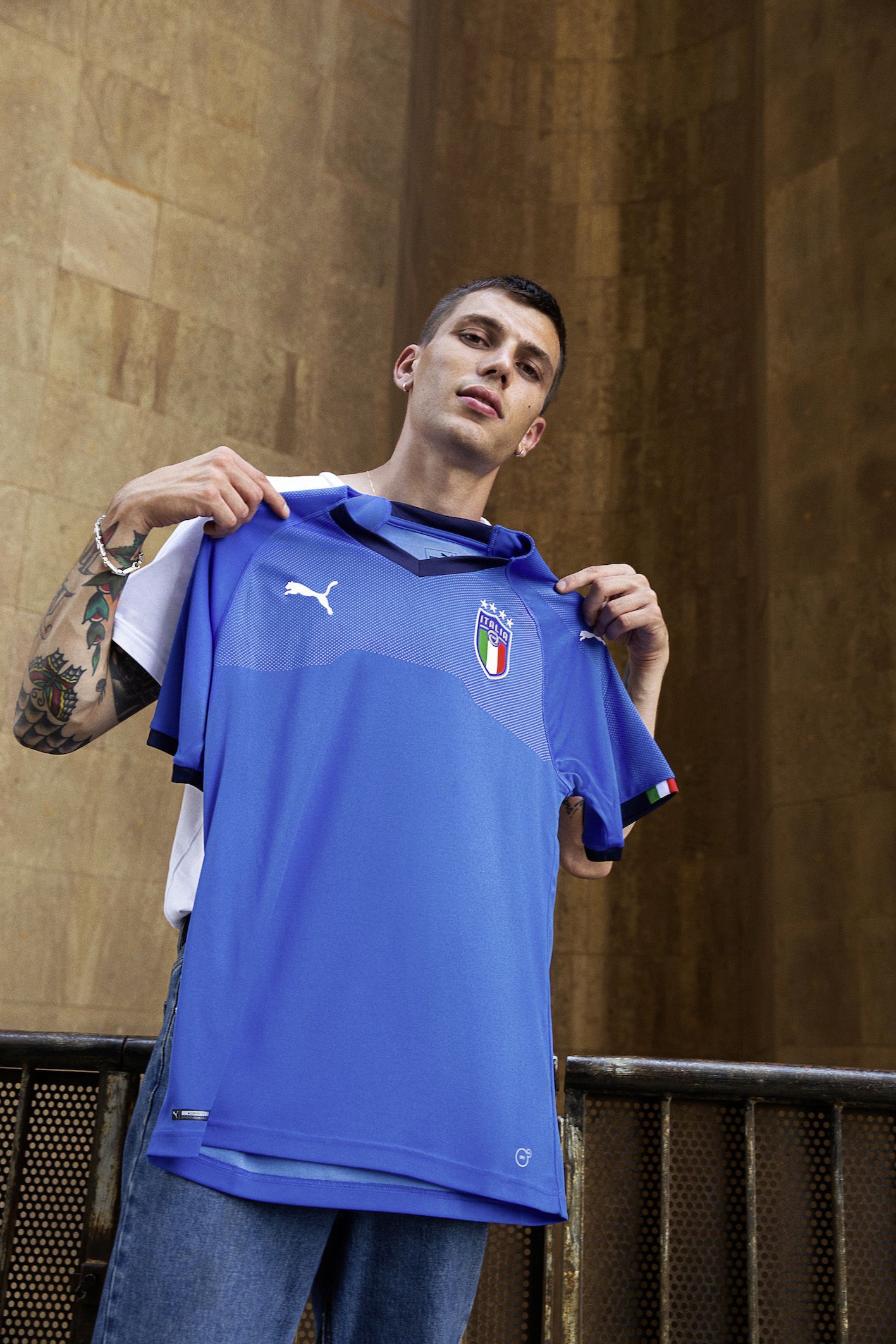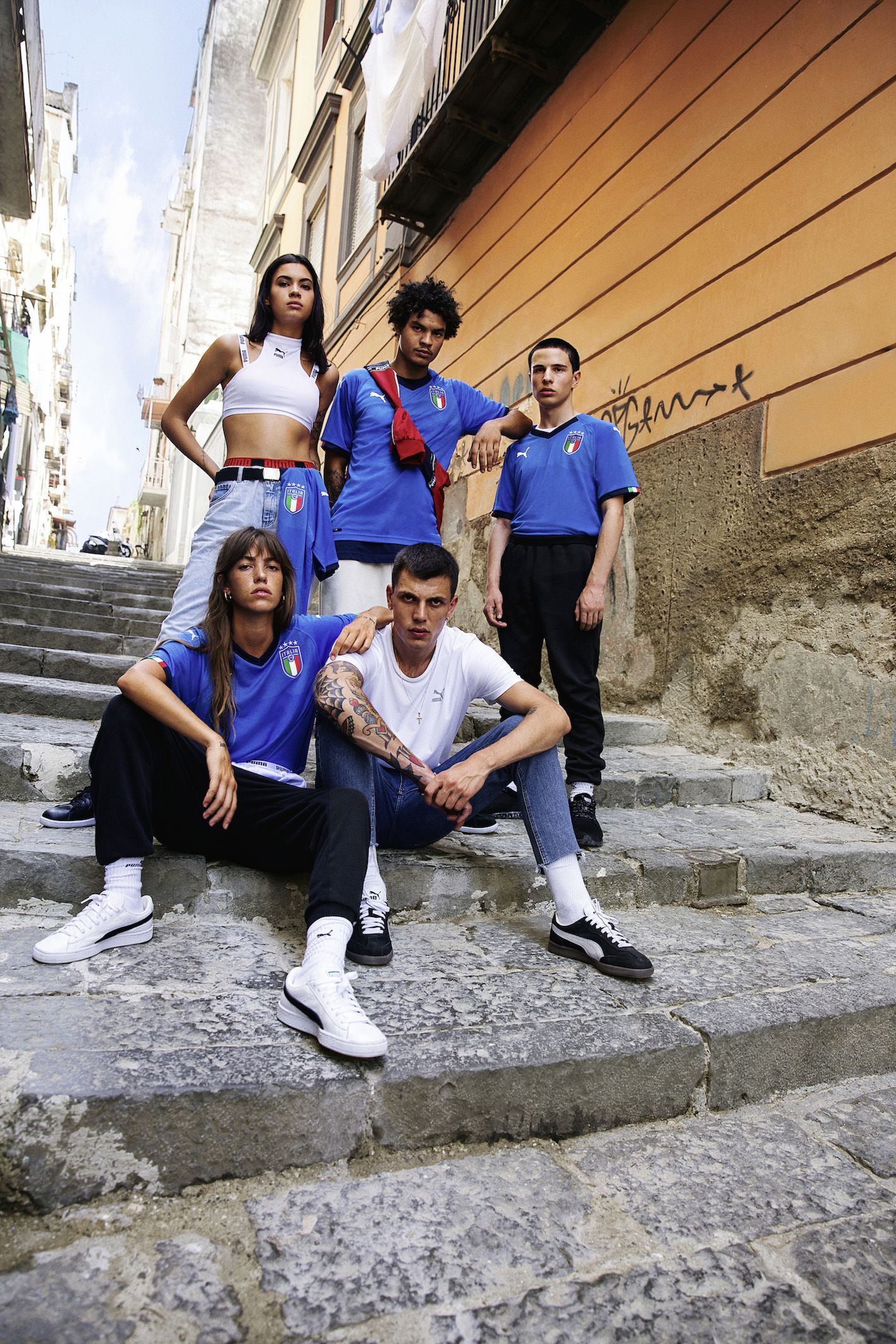 Le nuove maglie della Nazionale italiana scattate da nss factory Per le strade di Napoli, Vincenzo Schioppa ha fotografato le nuove home jersey degli Azzurri realizzate da PUMA