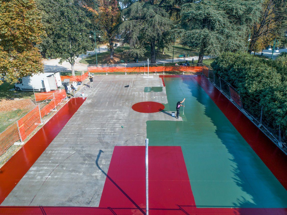 Il Parco Sempione è il cuore verde di Milano, e al suo centro c'è uno dei playgorund più famosi della città meneghina. Negli ultimi sul campo da basket si vedevano i segni del tempo e della scarsa manutenzione: cemento spaccato, nessuna riga per terra e canestri ad altezze diverse. Il brand americano Under Armour si è impegnata a riconsegnare il campetto ai giocatori di Milano ristrutturando interamente il playground.