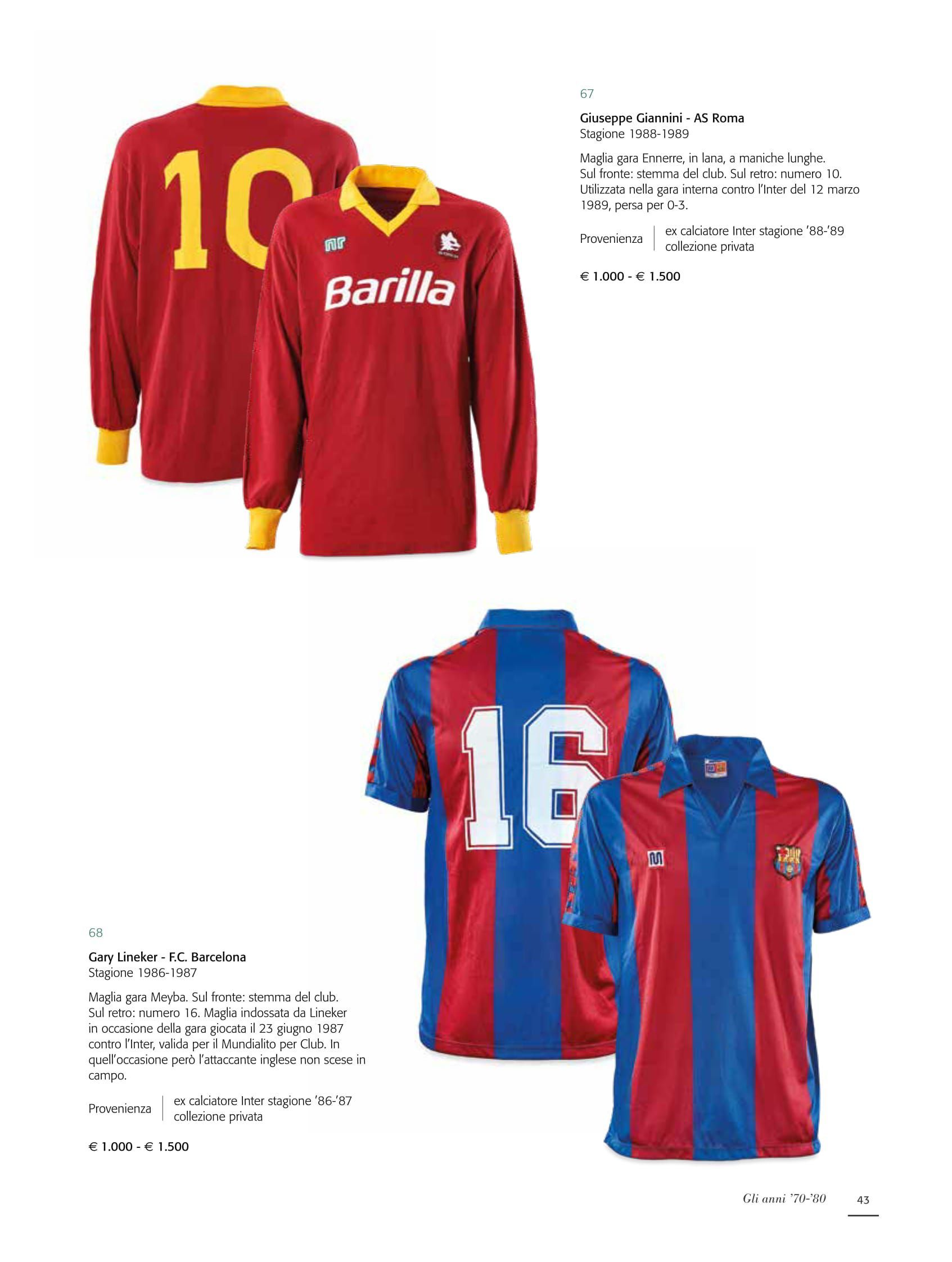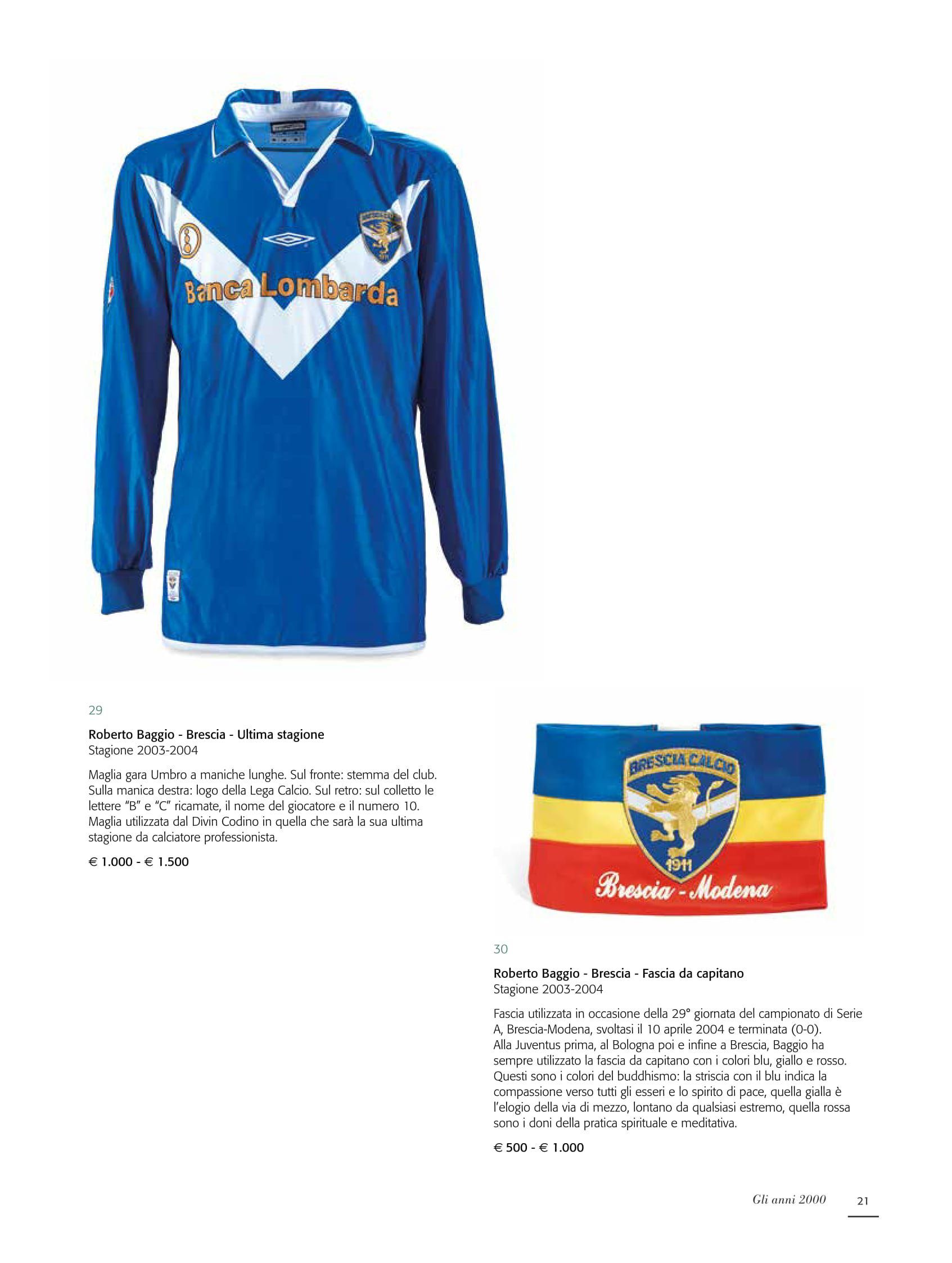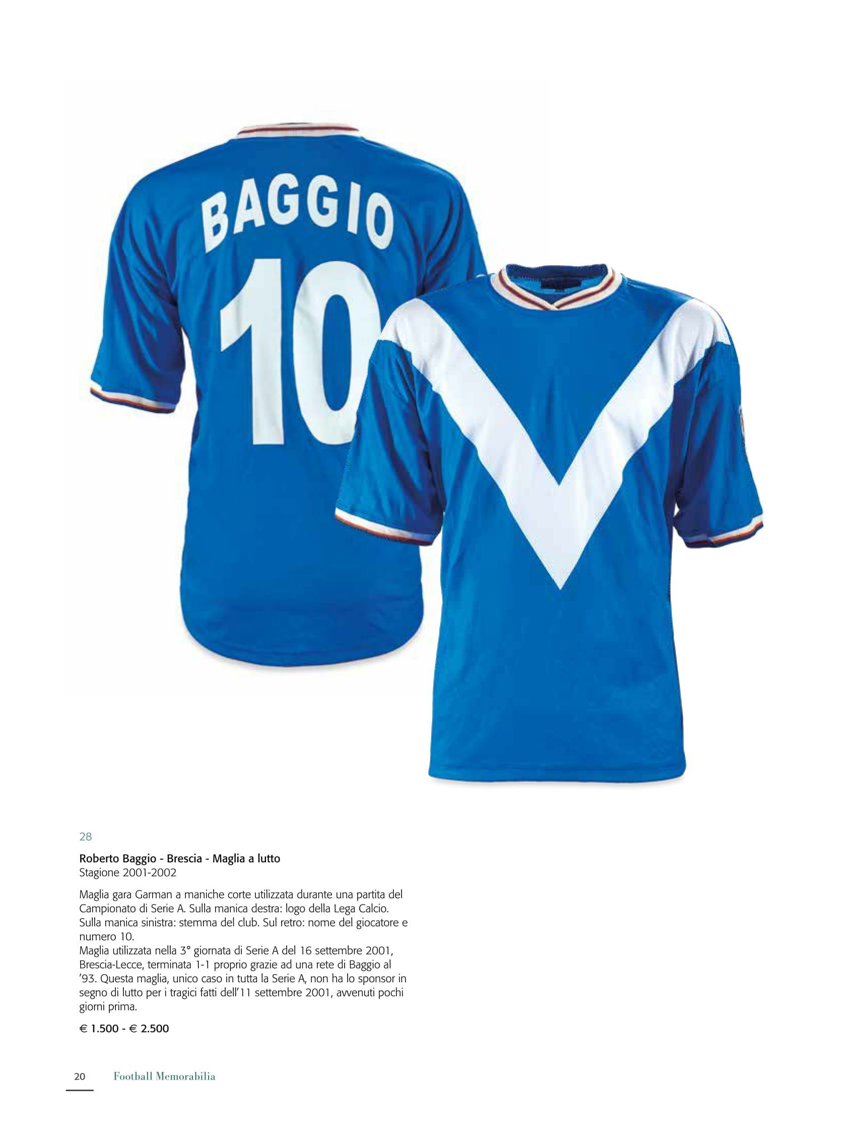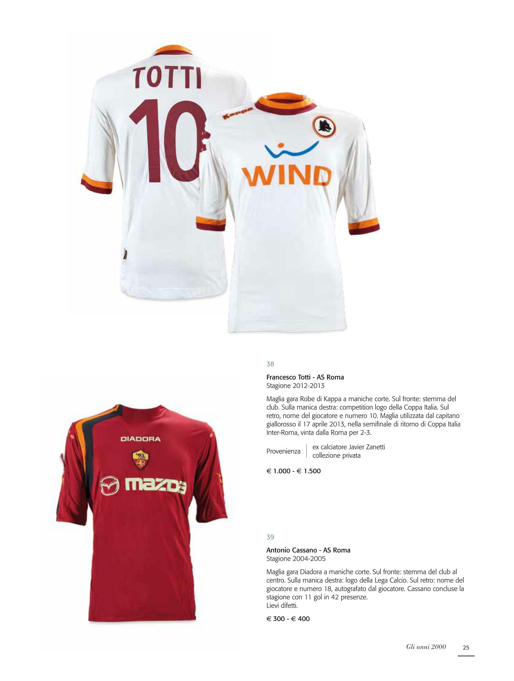 Per quanto riguarda i club l'offerta non è da meno, con sempre il numero 10 protagonista. Sarà battuta la maglia del Brescia di Roberto Baggio, una di Totti, la storica divisa Umbro della Lazio di Paul Gazza Gascoigne, la 10 di Mancini alla Sampdoria e quella di Gabriel Omar Batistuta. Altre magliette interessanti in vendita sono quelle del Milan di Kakà e Ronaldinho e quella di Adriano del Parma.