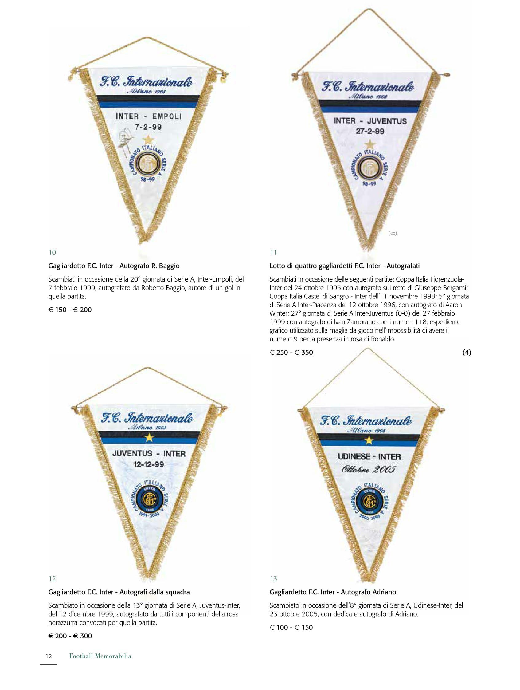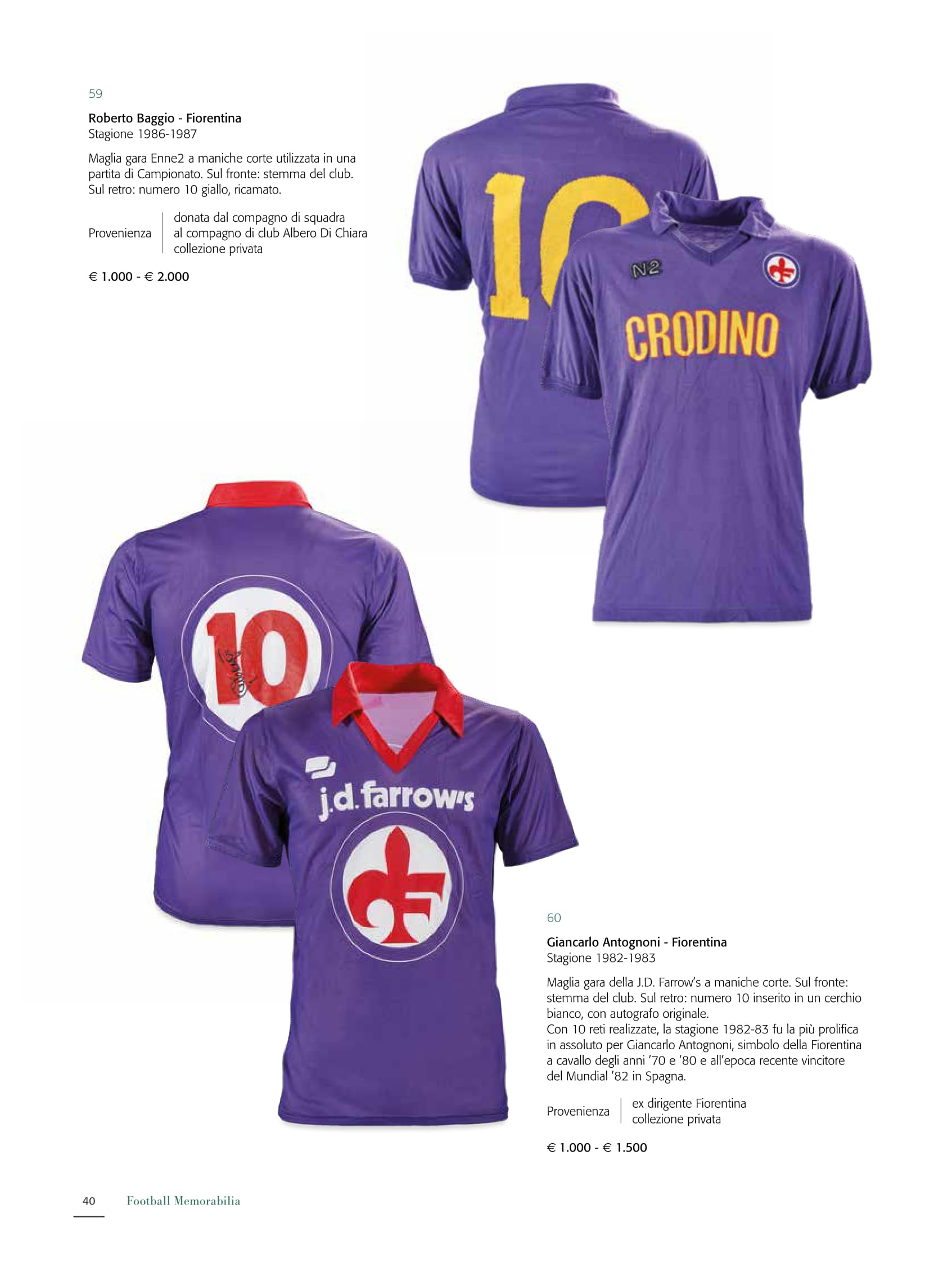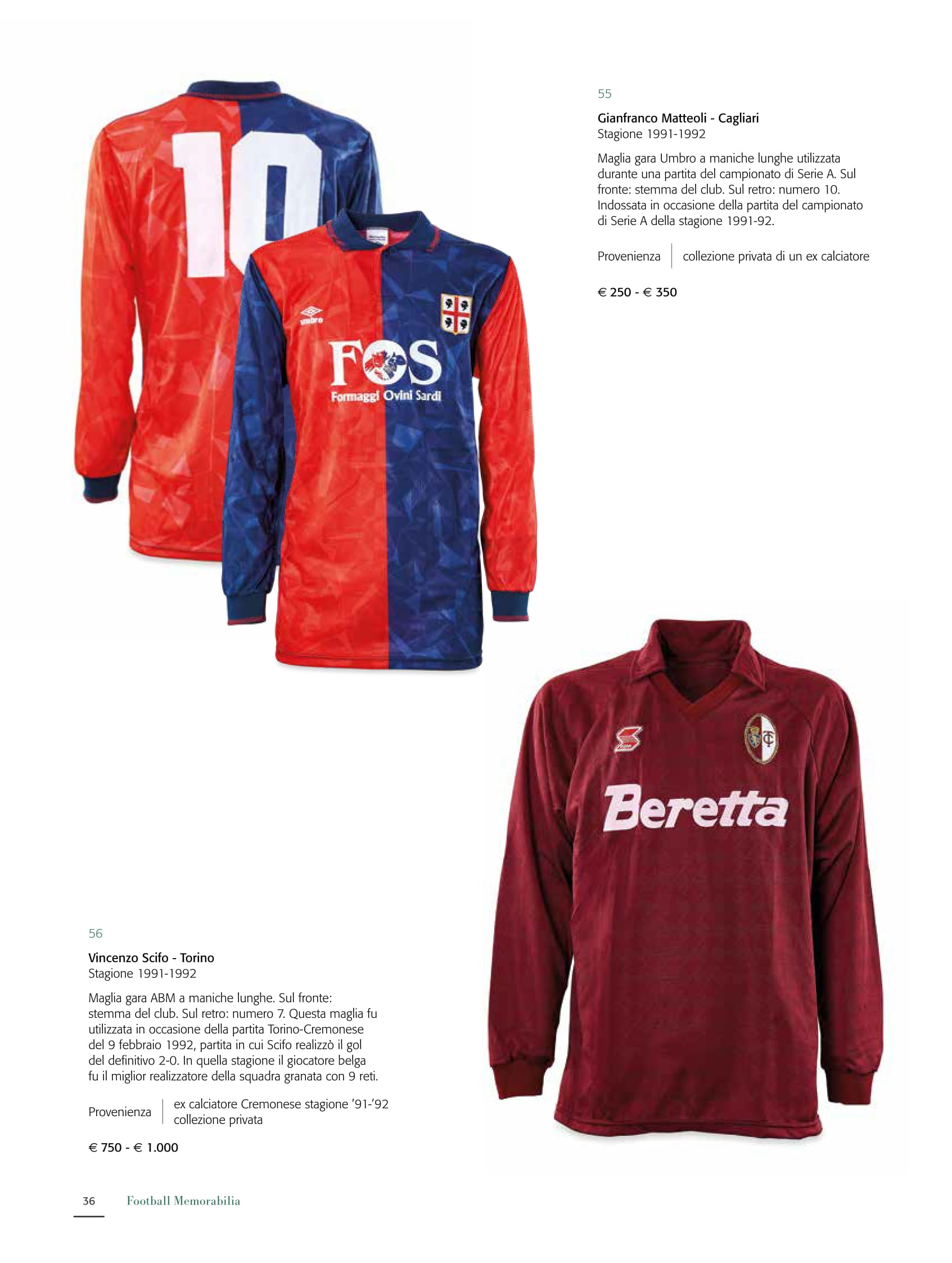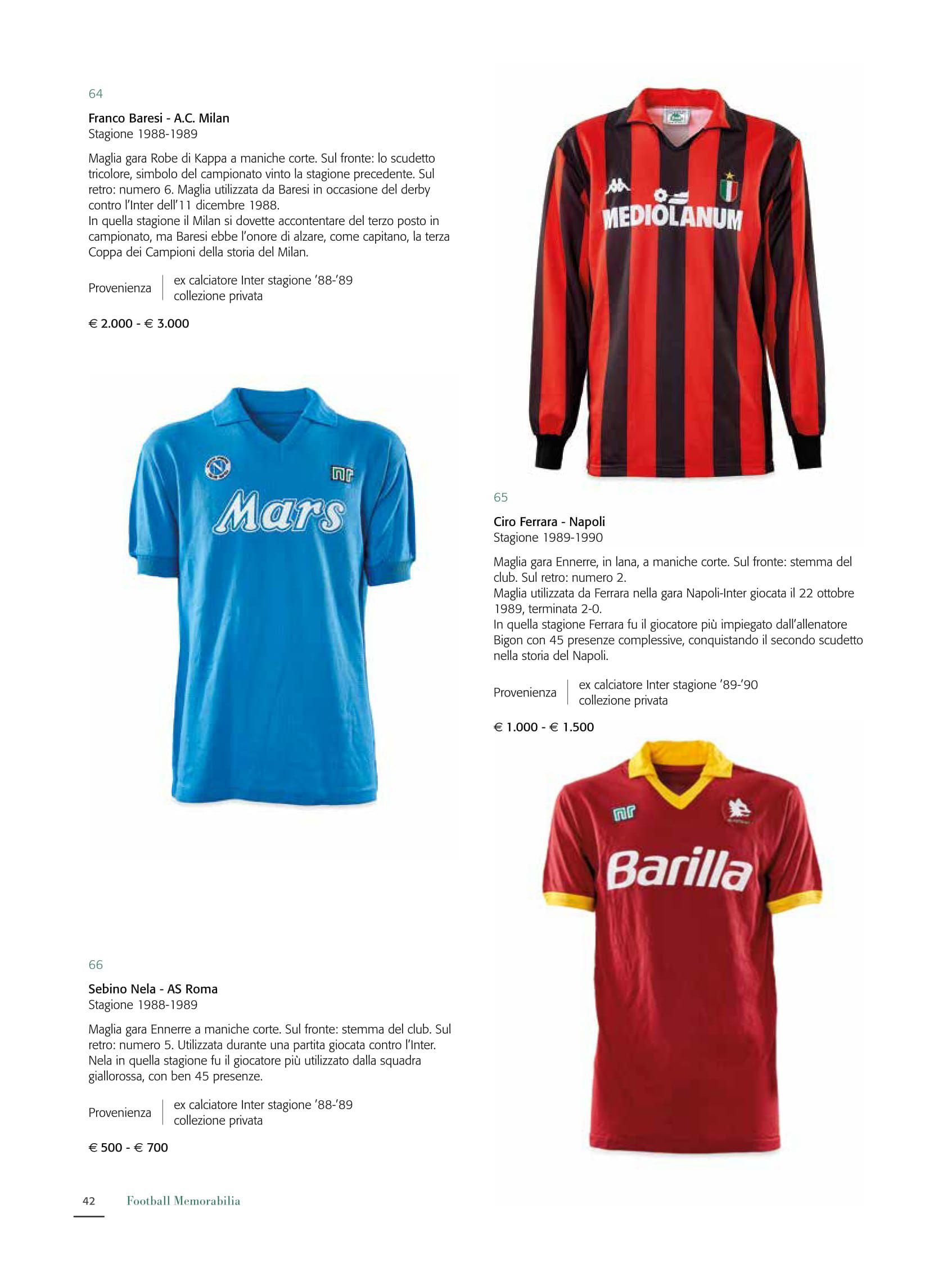 Per quanto riguarda i club l'offerta non è da meno, con sempre il numero 10 protagonista. Sarà battuta la maglia del Brescia di Roberto Baggio, una di Totti, la storica divisa Umbro della Lazio di Paul Gazza Gascoigne, la 10 di Mancini alla Sampdoria e quella di Gabriel Omar Batistuta. Altre magliette interessanti in vendita sono quelle del Milan di Kakà e Ronaldinho e quella di Adriano del Parma.