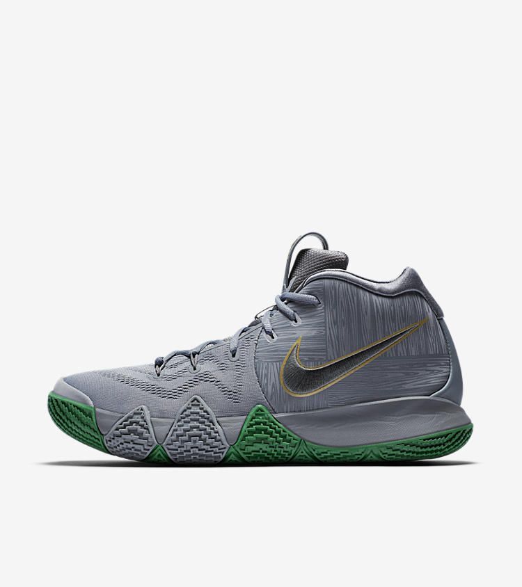 È un periodo molto impegnativo per la Kyrie 4, nuovo modello della signature shoe di Irving realizzato da Nike. Nel giro di un mese, infatti, la sneaker del play dei Celtics ha già visto ben quatto diverse colorway: le due versioni di lancio, “Confetti” e “Blk/Wht”, oltre che il modello “Black History Month” e la versione “London PE” per la gara giocata alla O2 Arena. Adesso la Nike Kyrie 4 è pronta a ricevere una nuova colorway, questa volta ispirata al parquet del TD Garden di Boston.