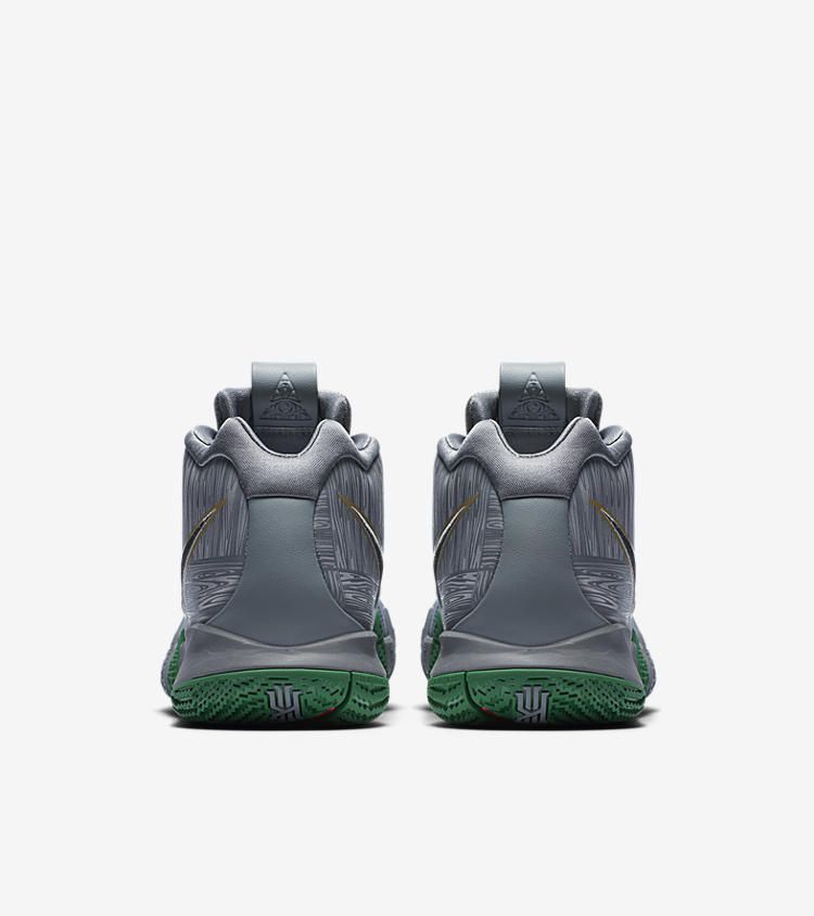 L’arena dei Celtics, infatti, è famosa per il suo hardwood molto particolare, un design appunto ripreso da questo modello della Nike Kyrie 4. Il lancio della nuova colorway dovrebbe coincidere con il lancio della “City Edition” uniform dei Celtics e presenta una tomaia grigia con pattern ispirato proprio al parquet del TD Garden. L’outline dello Swoosh è dorato, così come il pull tab che porta anche il branding di Irving. Suola di gomma e soletta interna, invece, sono verdi.