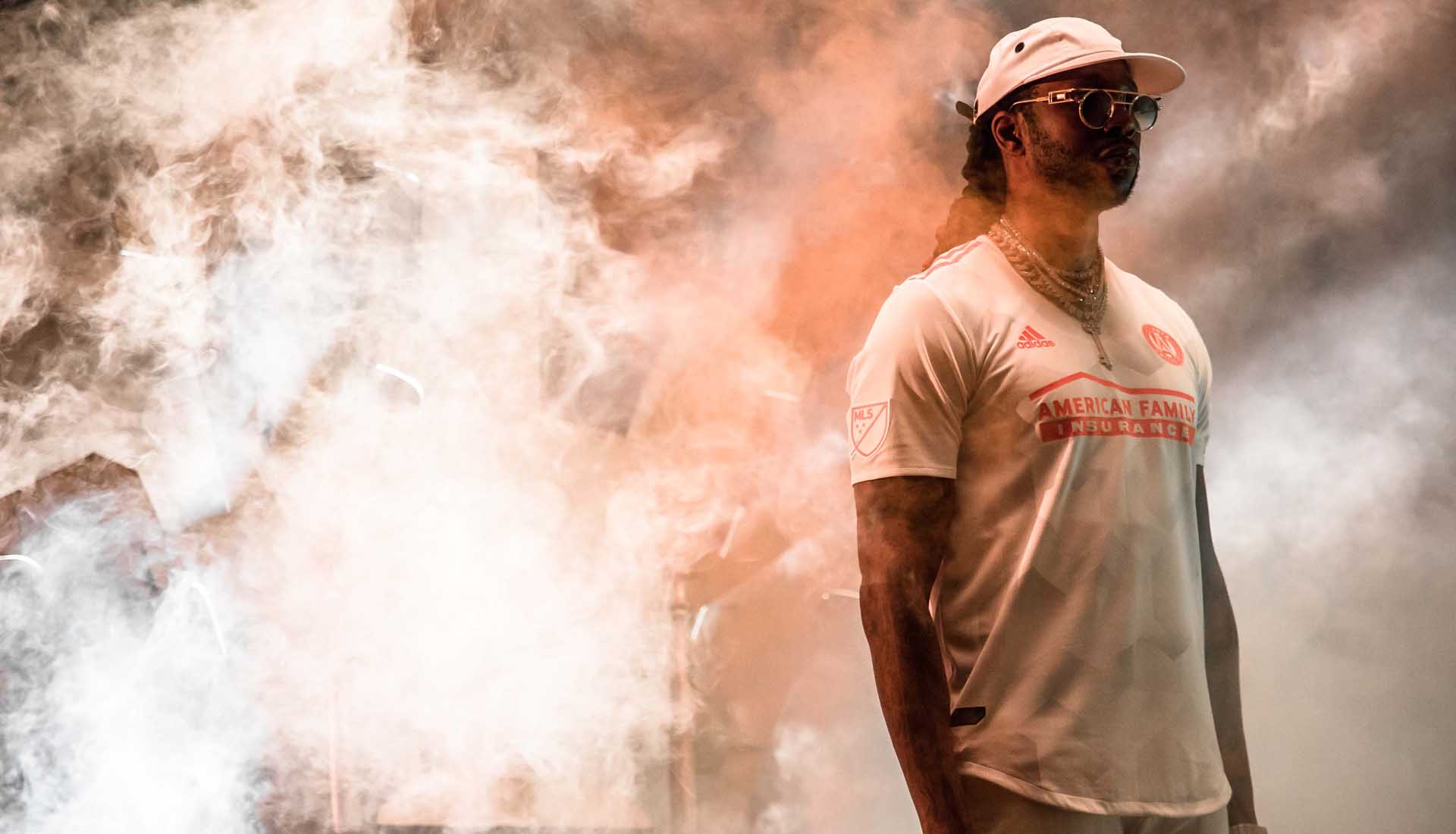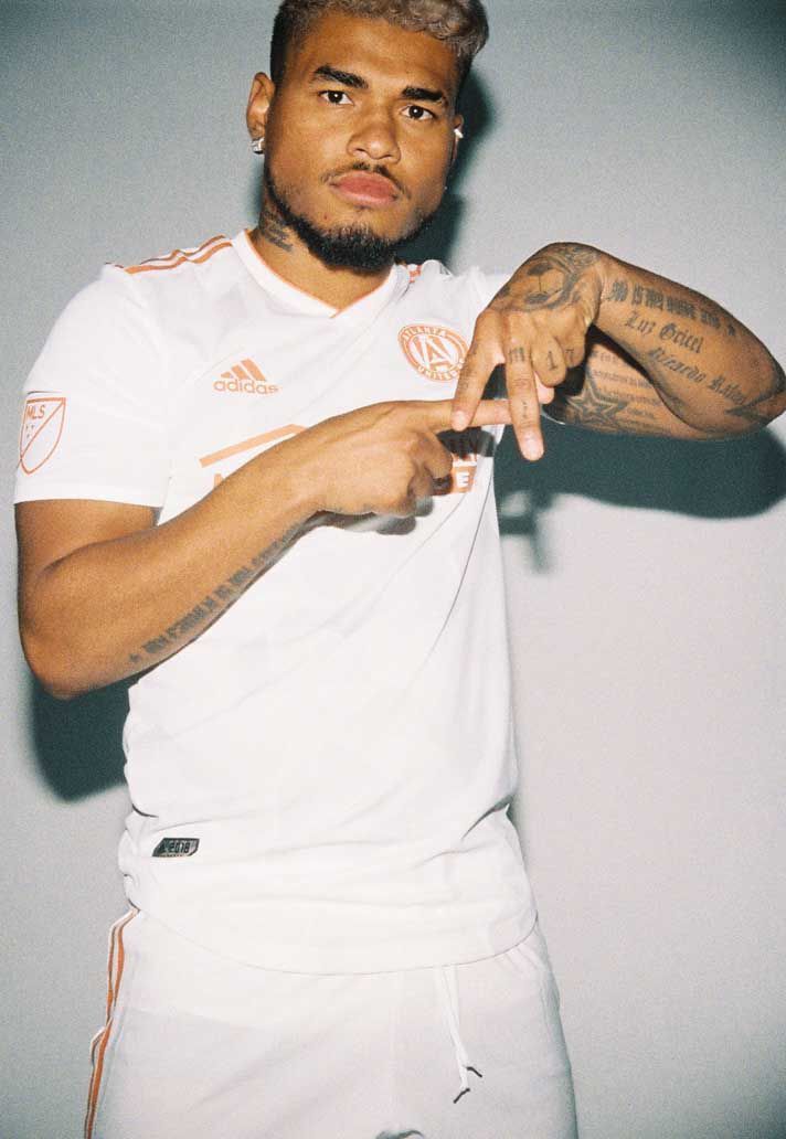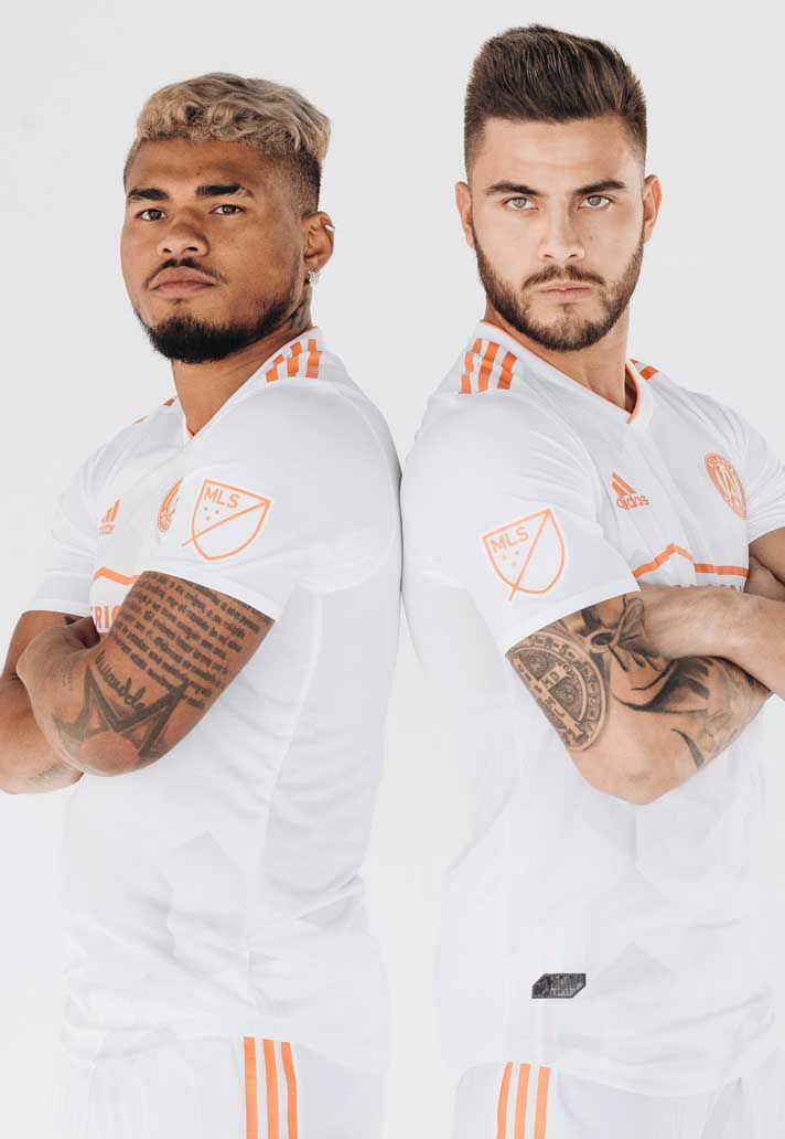 Anche il rapper 2-Chainz - oltre che 2000 tifosi di Atlanta presenti alla sessione di allenamento - ha assistito alla presentazione della maglia, che è principalmente bianca. Sulla parte frontale ci sono una serie di sfumature tendenti al grigio, richiamo al design di un pallone da calcio e allo spettacolare tetto del Mercedes-Benz Stadium. Tutti i dettagli della maglia, Three Stripes e logo adidas, il crest del club, lettering e numeri di maglia, nonché il jersey sponsor, sono color pesca, costante rimando all’heritage della città.