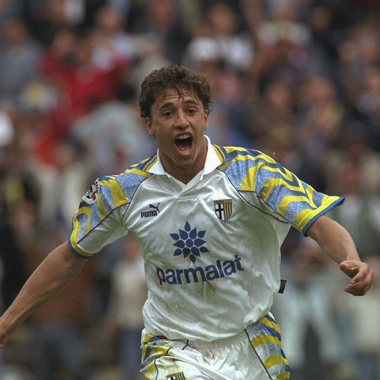 Un'altra delle utopie naufragate in bancarotta della Serie A anni '90. Il Parma di Tanzi - proprietario anche della Parmalat - fu una delle squadre più spettacolari del decennio e l'armonia grafica tra il logo della multinazionale alimentare e le grafiche anni delle magliette dei crociati restituiscono perfettamente quella patina dreamy e lontana dei dribbling di Zola e delle scivolate di Cannavaro.