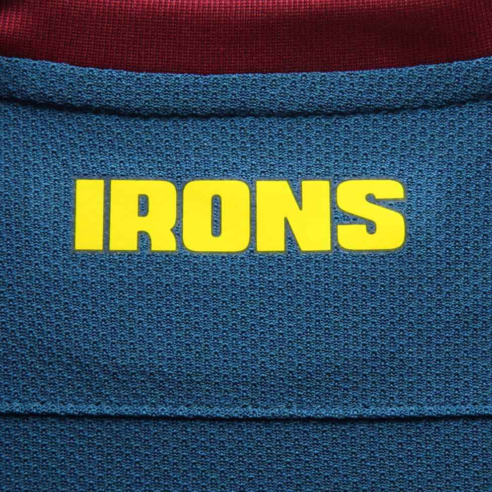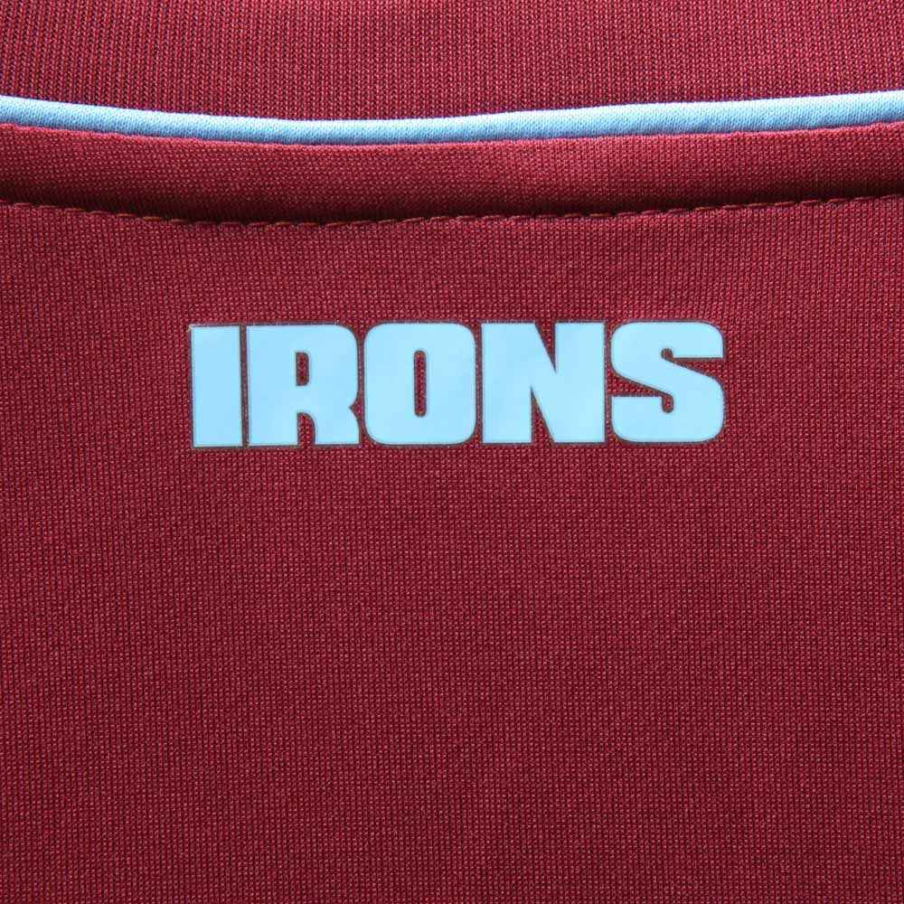 La divisa casalinga è piuttosto classica: colorway amaranto e dettagli azzurri, con il particolare del logo Umbro alla fine delle maniche. La scritta IRONS si trova sul retro del colletto, la divisa è completata da calzonicini e calzettoni bianchi.
