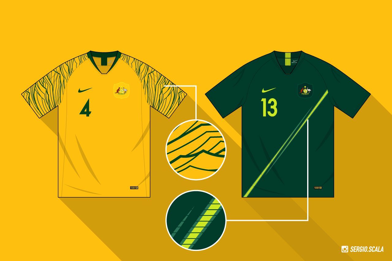 Lo Swoosh ha realizzato anche la maglia dei Socceroos, che trovano nella loro divisa home uno dei design più interessanti del Mondiale. Dove la maggior parte delle squadre Nike ha lo stesso pattern rigato, infatti, l’Australia ha un motivo più ondulato e irregolare, evidenziato dal contrasto tra il giallo della maglia e il verde profondo dei dettagli, stesso verde che rende decisamente meno nella shirt ‘da trasferta’. La maglia home resta comunque una delle più belle di Russia 2018.