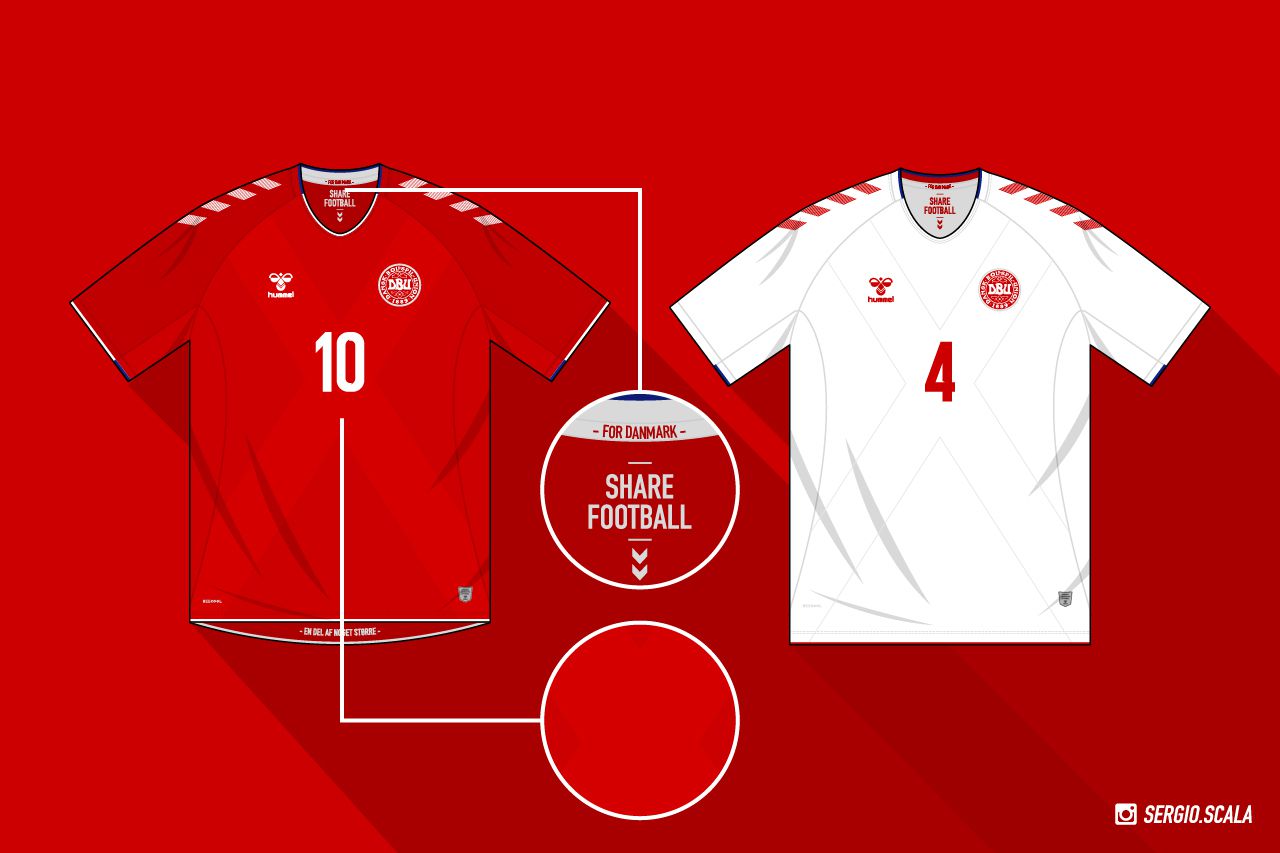L’unica pecca che possiamo imputare a uno dei nostri brand preferiti è quella di aver leggermente tradito la sua natura, che solitamente abbraccia stili e design moderni e audaci. Per la maglia della Danimarca, che rimane comunque molto bella, Hummel ha invece preferito puntare su un disegno più classico e molto nordeuropeo. Le maglie home e away sono essenzialmente identiche, cambiando semplicemente la combinazione di rosso e bianco come colori principale e secondario.