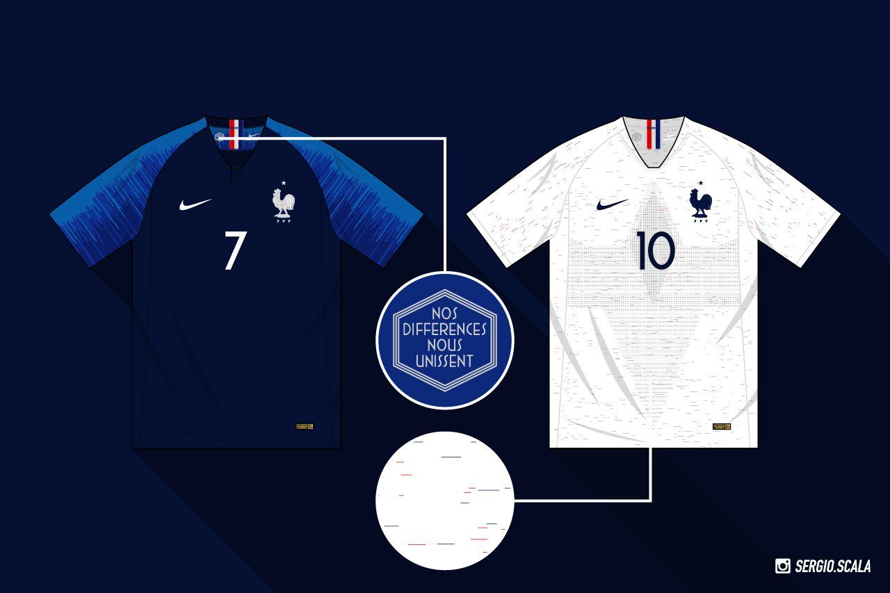 Nonostante la nazionale francese sia una delle più striking appariscenti sul campo per via dei suoi tanti giocatori giovani e hype - ovvero i vari Pogba, Griezmann, Mbappé e Dembelé - lo Swoosh ha realizzato due maglie molto classiche, soprattutto quella home. Questo ha portato i Bleus ad avere due jersey molto eleganti, con il tono blu scuro della maglia principale che fa perfettamente il paio con il bianco della divisa away.