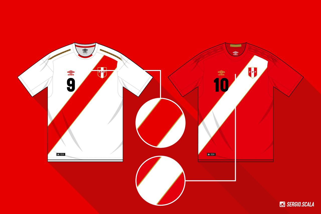 Raramente ci capita di trovarci in disaccordo con le scelte estetiche di Umbro e questa doppia maglia della nazionale peruviana non fa eccezione. Per la Rojiblanca, il Double Diamond ha realizzato una sorta di coppia di jersey double face, con la home che mantiene la classica colorazione bianca con striscia diagonale rossa e la away che fa l’esatto contrario. Entrambe le maglie sono rese più eleganti dai dettagli in oro, tanto nel crest della federazione peruviana quanto nelle outline della banda diagonale.
