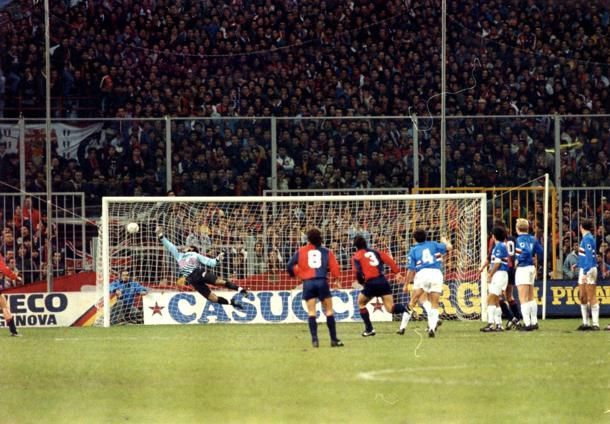 È l'anno dello scudetto della Sampdoria di Vialli & Mancini, di Boskov e Attilio Lombardo, del presidente Mantovani e della meteora Mychajlyčenko. Il derby in questione si gioca il 25 novembre del 1990 e il Genoa si toglie lo sfizio di vincere il derby in casa e di battere i futuri campioni d'Italia con una punizione capolavoro del terzino brasiliano Branco. Dopo il vantaggio iniziale blucerchiato su rigore trasformato da Vialli, Eranio fa 1-1 e al 74° lo specialista brasiliano tira una mina con le famose "tre dedos", di sinistro imprendibile per un Pagliuca che nonostante il volo non può far nulla su quel pallone che si insacca all'incrocio. Una punizione da cartolina, infatti i tifosi del Genoa ne fecero stampare a migliaia e le spedirono ai cugini come augurio di un sereno natale. C'è addirittura chi di questa immagine ne ha fatto un quadro, sì proprio Branco: