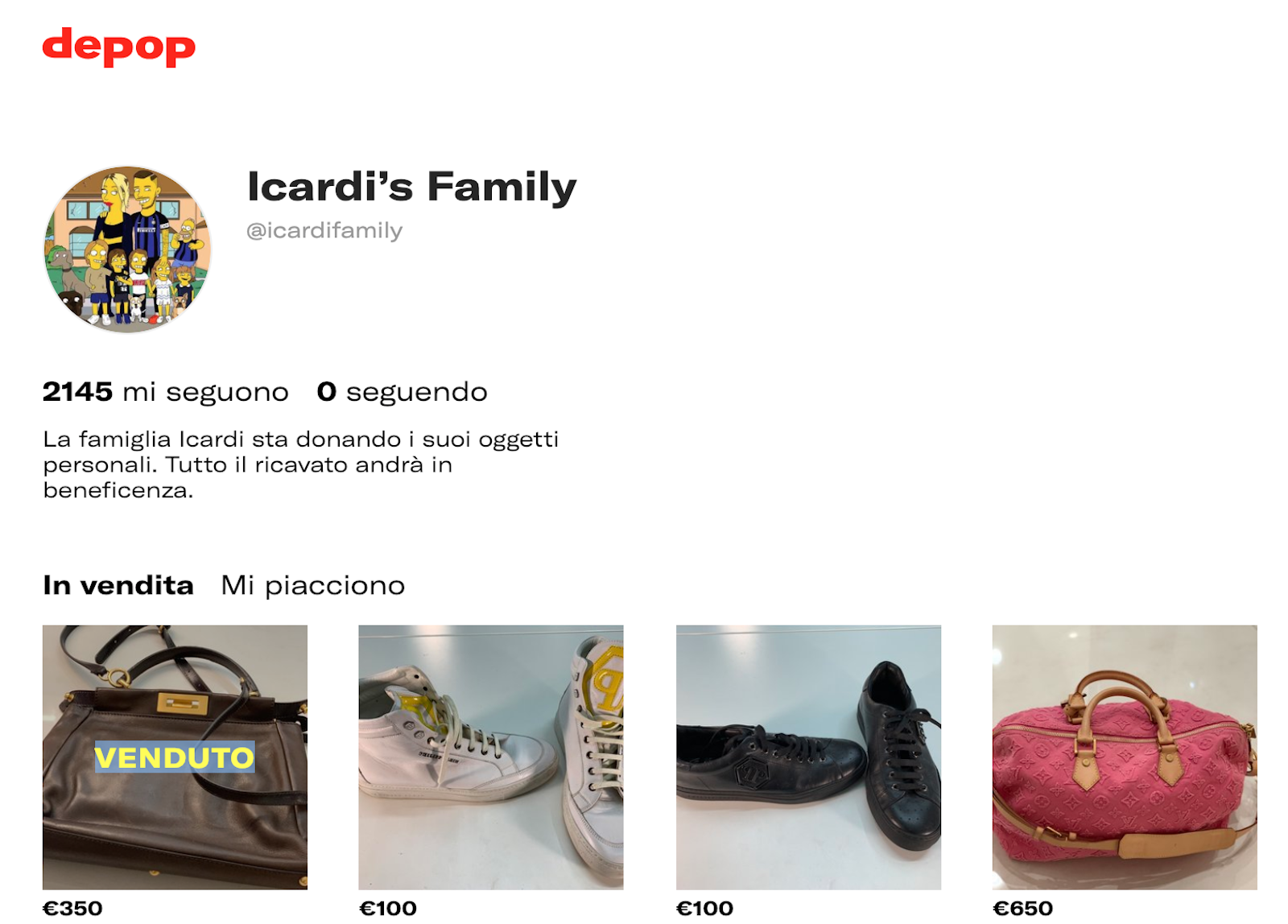 @icardifamily è un classico profilo Depop, sito per lo shopping sociale fondato nel 2011 in Italia, che permette agli utenti di acquistare e vendere i propri articoli come fosse una vetrina online. Ogni item ha una scheda personalizzata in cui è inserito il prezzo, informazioni su dimensioni e condizioni e nella quale è possibile fare domande al venditore. Il profilo della famiglia Icardi è stato aperto circa un mese fa e ha attualmente poco più di 2000 follower. L'applicazione ha attratto molte celebrità, le quali hanno aperto veri e propri negozi online, destinando i proventi in beneficenza, stesso obbiettivo degli Icardi's, come specifica anche la bio.