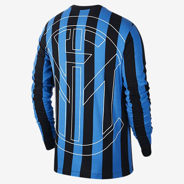 Dopo aver realizzato quelle di Paris Saint-Germain e Barcellona, Nike ha messo in vendita una maglia speciale dal sapore nostalgico con i colori dell'Inter. Prodotta in cotone e con le maniche lunghe, la casacca retro è interamente a strisce verticali neroazzurre: davanti è pulitissima con solo un piccolo swoosh sulla parte destra del petto, mentre sul retro è presente un crest gigante, stilizzato in bianco.