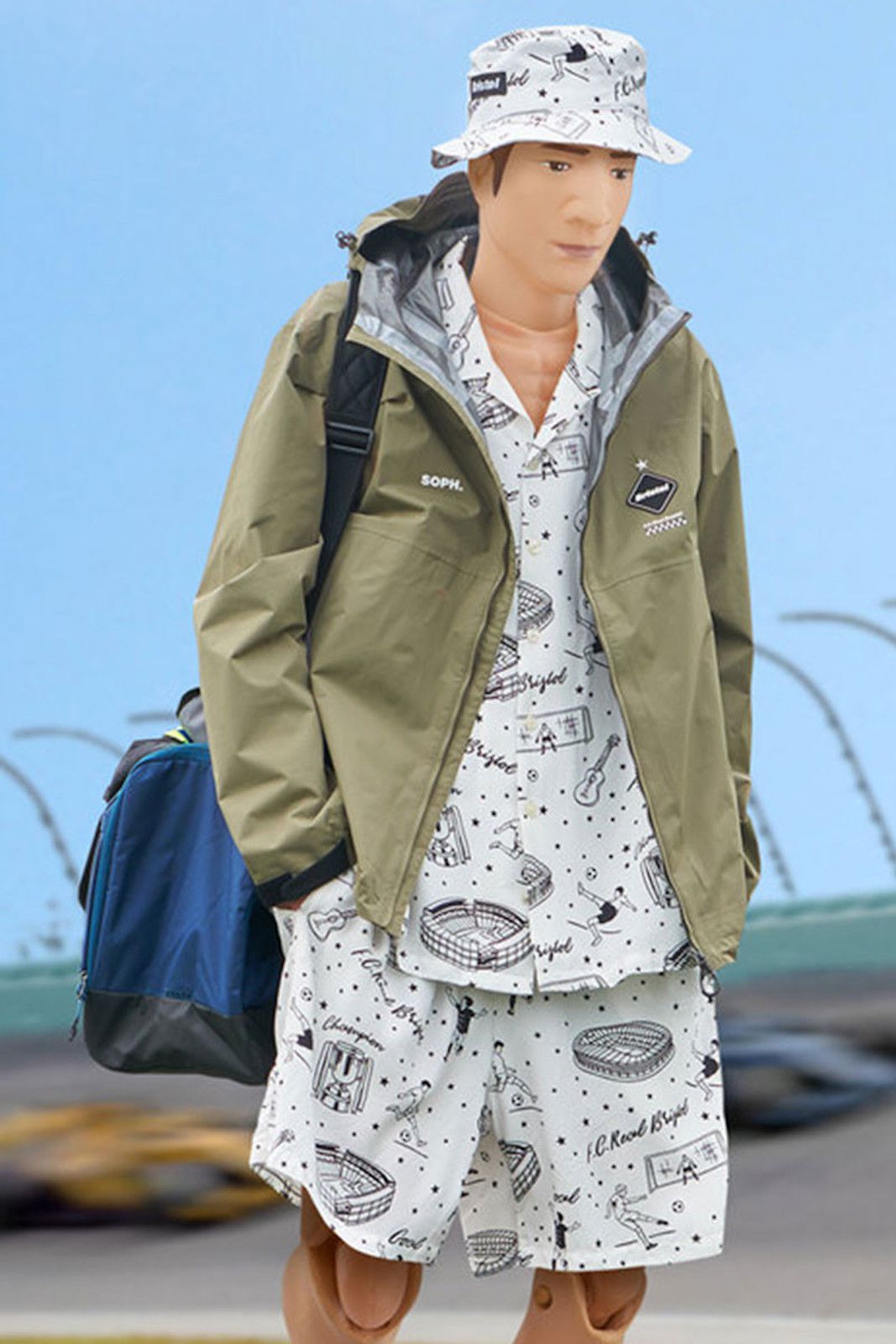 La squadra fittizia di SOPHNET rielabora con colori fluo gli adesivi presenti sulle macchine della più grande organizzazione di gare su pista americana e le bandiere a scacchi, riproposte sugli item della collezione in colori fluo, o coperte da fiamme. Insieme al logo della squadra, sono proprio quest'ultime il filo conduttore della collezione, presenti nelle maglie e in molti altri item presentati nei giorni scorsi e disponibili nel sito di SOPH. Il risultato dell'unione tra calcio, streetwear e corse è decisamente cool e la comunicazione del brand è come sempre esemplare, anche grazie ai manichini semi-umani con maschere di gomma, che indossano gli abiti mentre giocano a calcio. L'effetto è unico e originale.