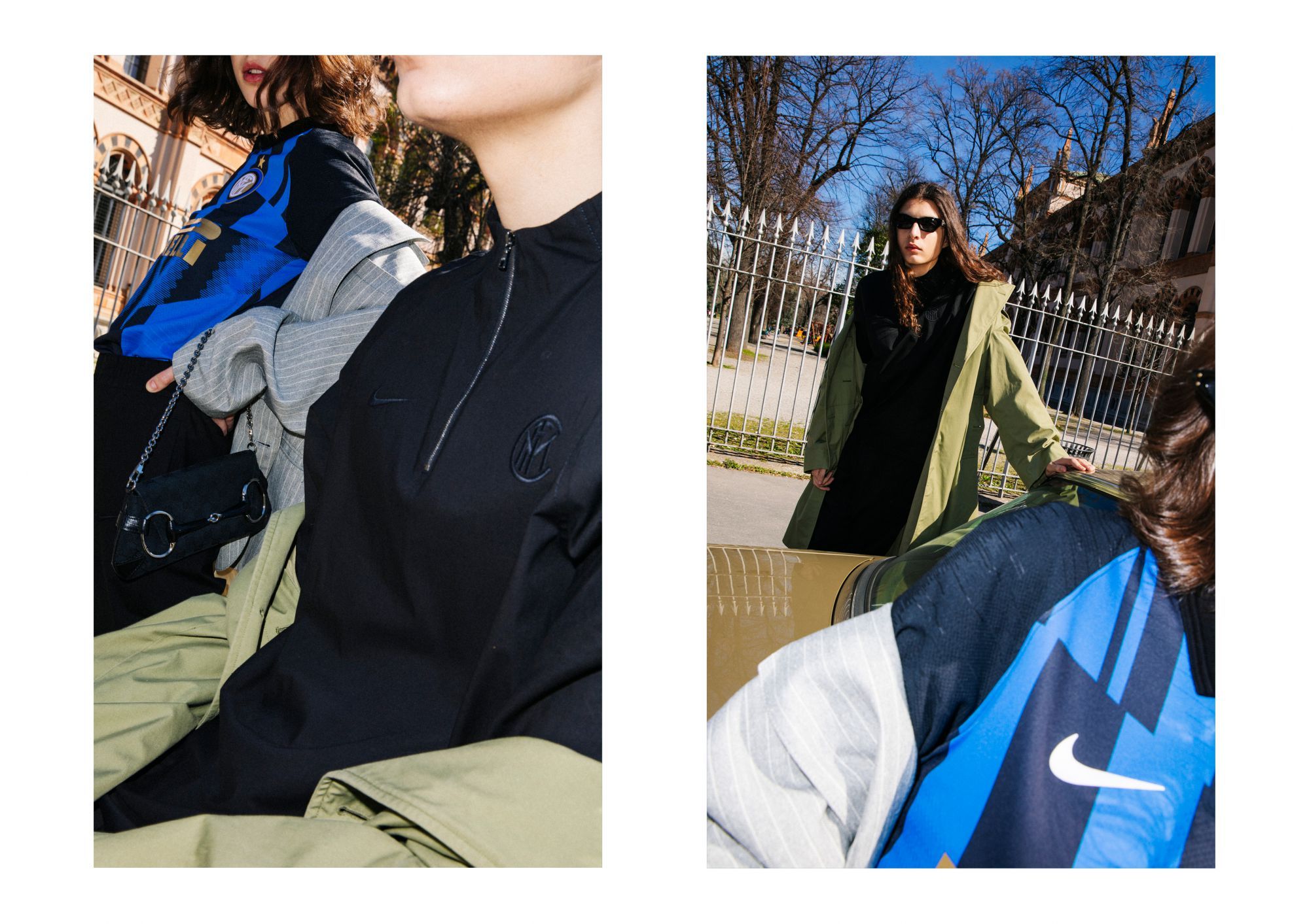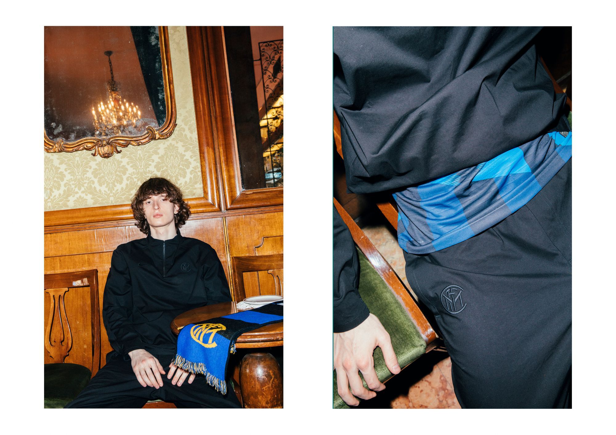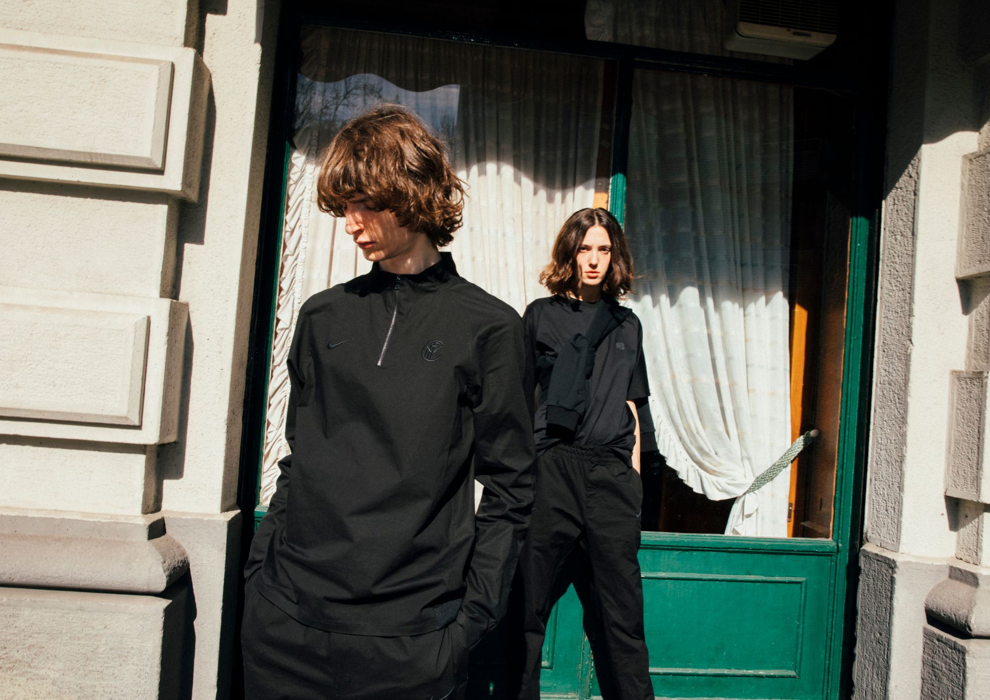 La collezione presenta una serie di capi con tagli e ispirazioni street realizzati in tessuto lavorato con la migliore cura artigianale italiana. Il total black domina la collezione con dettagli come lo swoosh e il crest dell'Inter a impreziosire i capi.