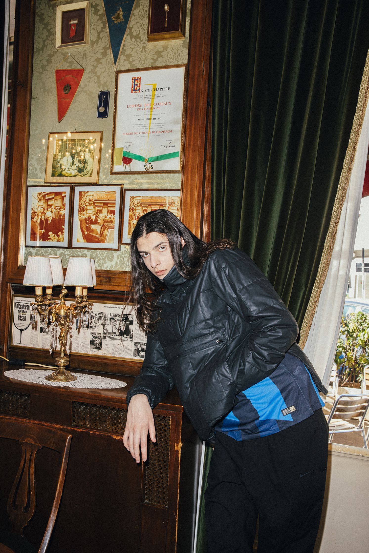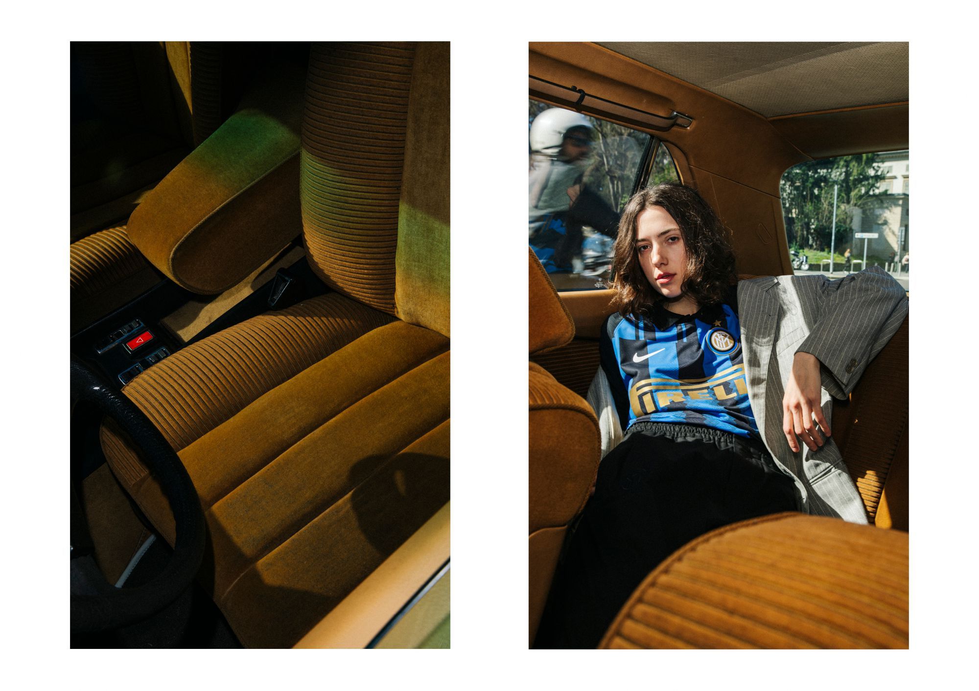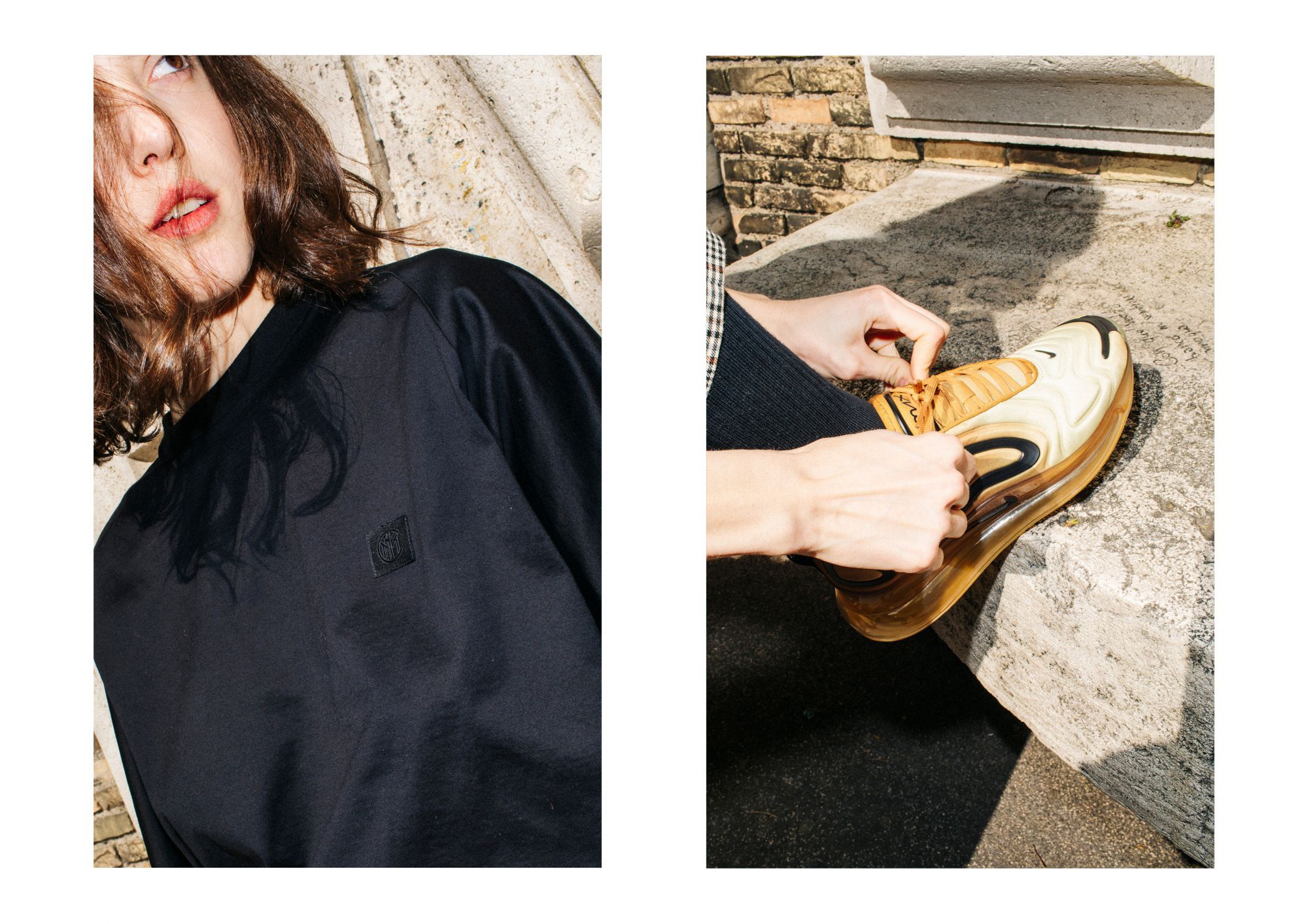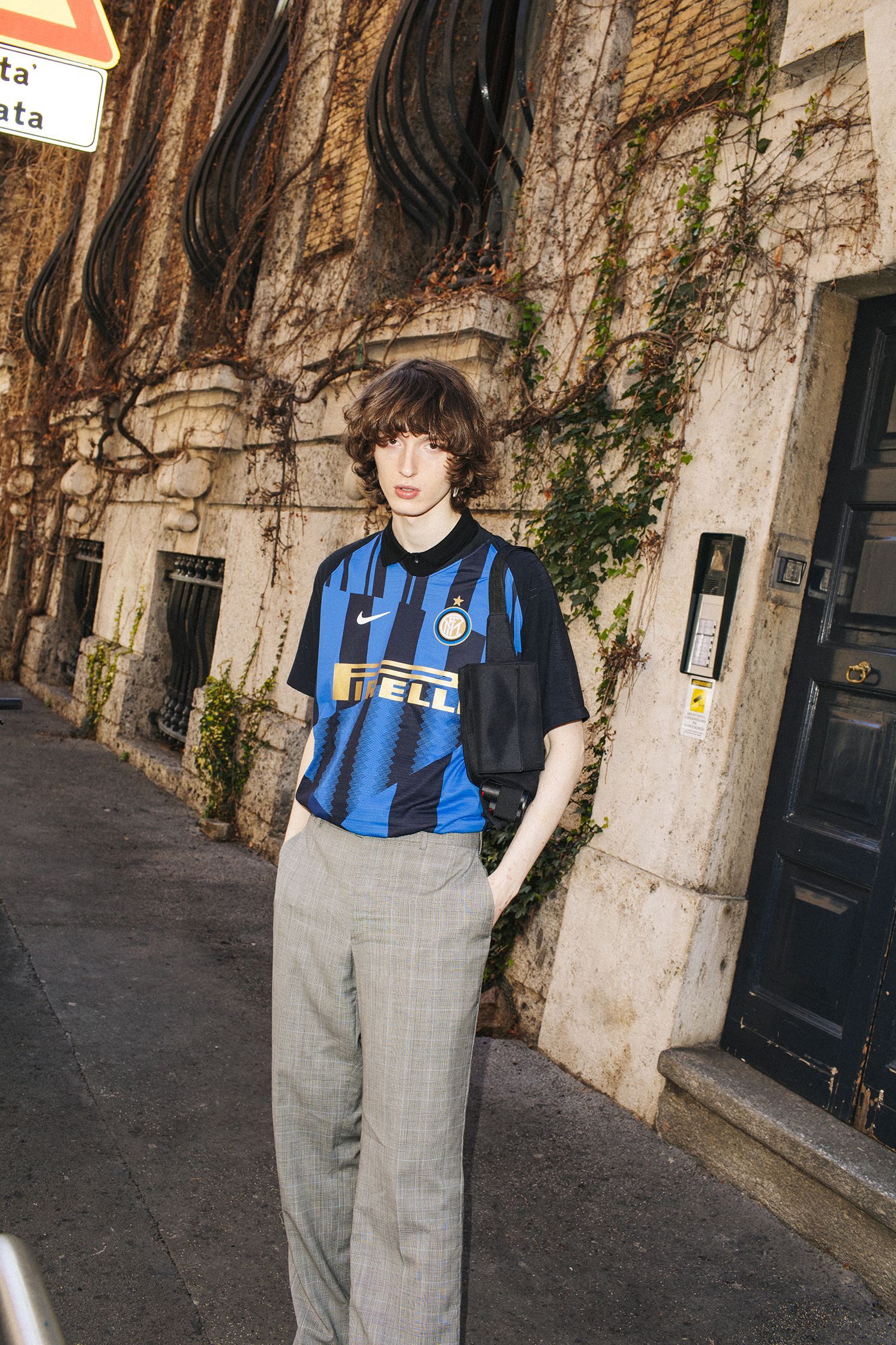 La collezione presenta una serie di capi con tagli e ispirazioni street realizzati in tessuto lavorato con la migliore cura artigianale italiana. Il total black domina la collezione con dettagli come lo swoosh e il crest dell'Inter a impreziosire i capi.