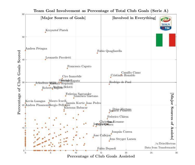 La curiosa statistica è stata postata da un utente su Reddit e ovviamente va presa con i guanti: non si sta dicendo che Ciano sia più forte di Cristiano Ronaldo, né che sia più decisivo del portoghese. Non bisogna neanche stare a spiegare il perché. I numeri in questione, però, evidenziano l’importanza di un giocatore per una determinata squadra. E quindi, dati alla mano, possiamo dire (semplificando) che Ciano è più importante per il Frosinone di quanto Cristiano Ronaldo lo sia per la Juventus.