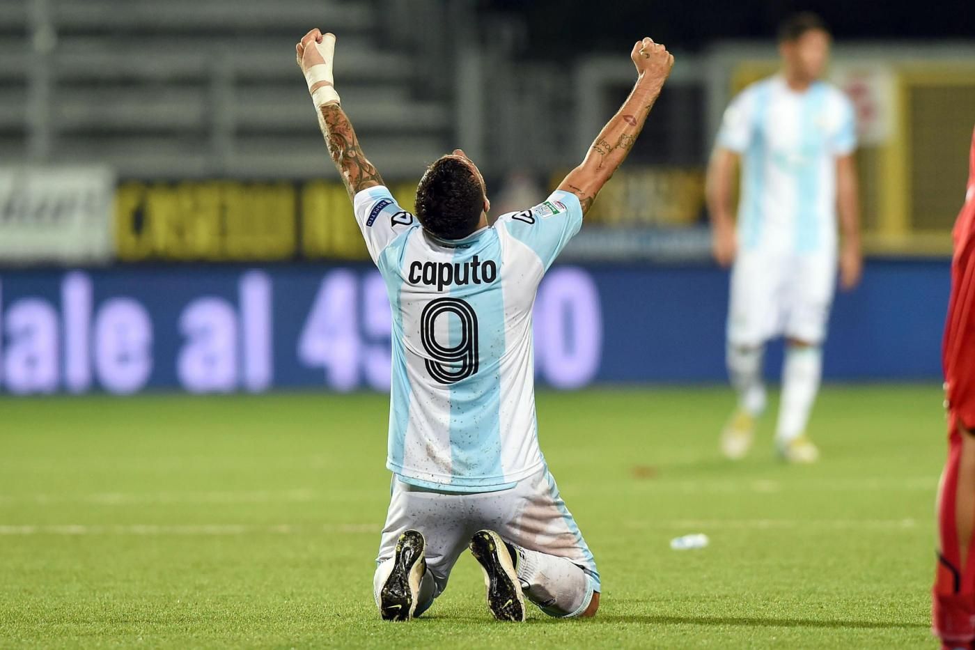 In occasione del secondo gol segnato lo scorso 22 settembre contro la SPAL, Francesco Caputo, detto “Ciccio”, ha tentato di scavalcare i cartelloni pubblicitari per andare ad esultare, ma ha messo male un piede ed è caduto nel vuoto, sparendo per un momento dall’inquadratura. Poi però è riapparso, luminoso, divertito, sorridente. Ed ha continuato ad festeggiare con i suoi tifosi.