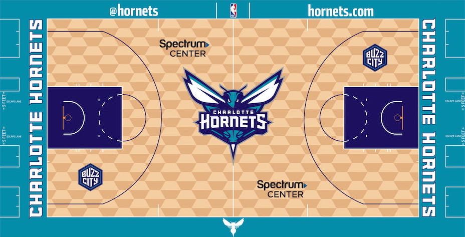 E' lo stesso parquet dal lontano 2014 ma rimane uno dei più originali, con il motivo esagonale a nido d'ape che riempie quasi tutta la superficie del pavimento, e con il ritorno del logo silhouette al centro.