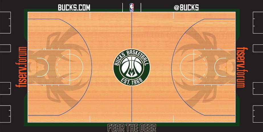 Restando ad Est, i Bucks di Gianni Antetokounmpo si sono da poco trasferiti nel Fiserv Forum e presentano una versione particolare del loro parquet in versione 'statement edition': in questo caso è raffigurato un cervo gigante su tutta la superficie dell'area da 3, una scelta stilistica adottata anche dai Pelicans già qualche stagione fa.