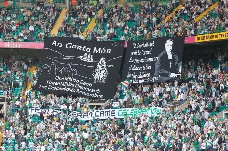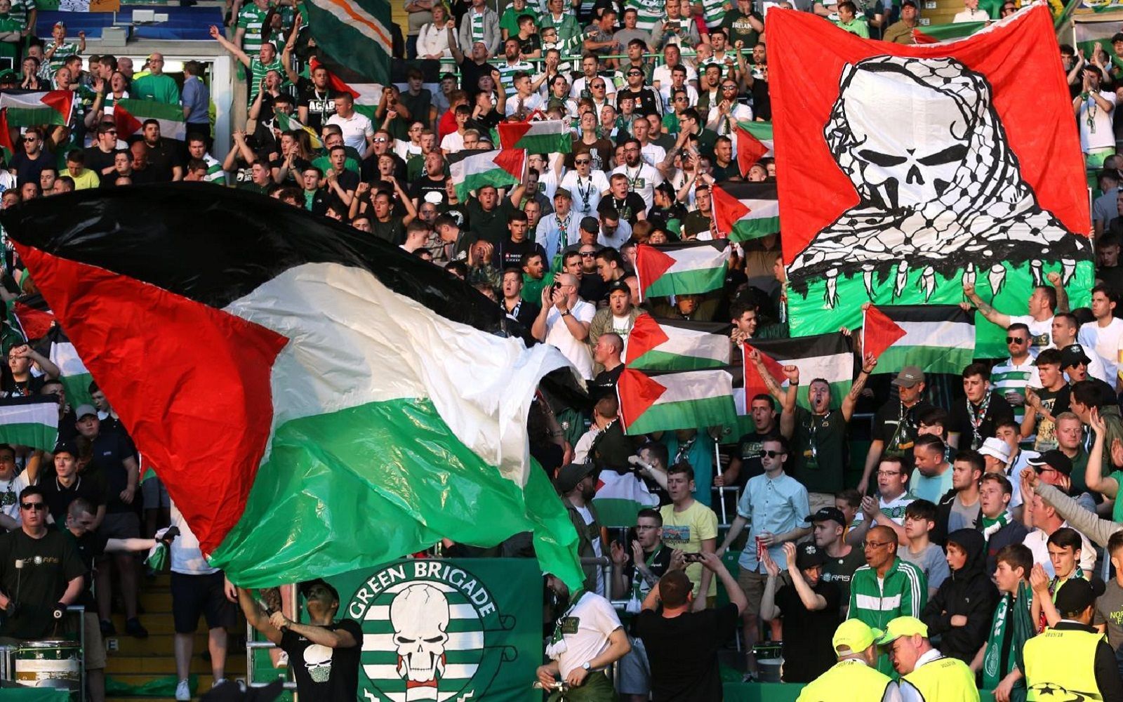 Il Celtic Park non è nuovo a coreografie così schierate. La fanbase del Celtic ha radici profonde e una forte coscienza sociale e politica che costituisce l’identità stessa del club. Dalla sua fondazione nel 1888, il Celtic Football Club è simbolo della comunità irlandese cattolica emigrata in Scozia, nazione prevalentemente protestante (come i Rangers, storici rivali del Celtic). La Green Brigade è dichiaratamente di sinistra e negli anni non hai mai mancato di rimarcare la sua forte connotazione politica. Nel 2016 alcuni tifosi del Celtic sventolarono sulle tribune numerose bandiere della Palestina e nel 2018, sempre per dimostrare la propria posizione sulla questione palestinese, sugli spalti era apparsa la scritta “Celtic stands with Palestine. End genocide. End zionism” (“La tifoseria del Celtic con la Palestina. Basta genocidio. Basta sionismo”). Ricorrente è anche la loro vicinanza con movimenti indipendentisti (Athletic Bilbao) e altre tifoserie di sinistra come quella del St. Pauli, squadra di Amburgo che ha fatto del suo schieramento politico e della sua lotta all’omofobia un marchio di fabbrica. Anche il Celtic ha dimostrato più volte di essere un club apertamente gay-friendly, esponendo nel 2017 uno striscione che recitava con un font arcobaleno “A club open to all”.