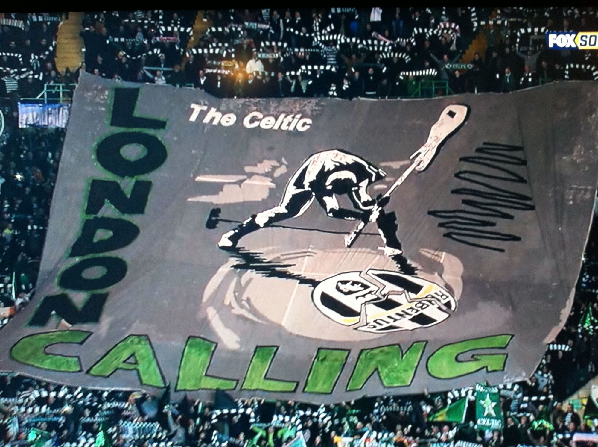 Ma gli striscioni presenti al Celtic Park non hanno solamente una connotazione politica. La lunga serie di banner esposti sulle tribune del Paradise dimostra come l’ironia e la creatività siano caratteristiche distintive della tifoseria biancoverde. Nel 2013 l’inventiva degli Hoops raggiunse forse uno dei suoi picchi più elevati: in occasione del match di Champions League contro la Juve, venne esposto un gigantesco striscione che replicava fedelmente la copertina dell’album dei Clash London Calling, con Paul Simonon intento a spaccare il suo basso sullo stemma della Juve ormai in frantumi. Nel 2012 al Celtic Park comparve invece uno striscione in ricordo delle vittime della Great Famine (la grande carestia), che a metà Ottocento causò la morte di circa un milione di persone. Decisamente più legato all’ambito sportivo è invece l’enorme banner dedicato a Muhammad Ali esposto dal Celtic lo scorso ottobre nel match contro il Cluj in Europa League, che recitava la celebre frase del pugile americano “Ain't nothing wrong with going down. It's staying down that's wrong” (“Non c'è niente di sbagliato nell'andare al tappeto. Stare al tappeto è sbagliato").