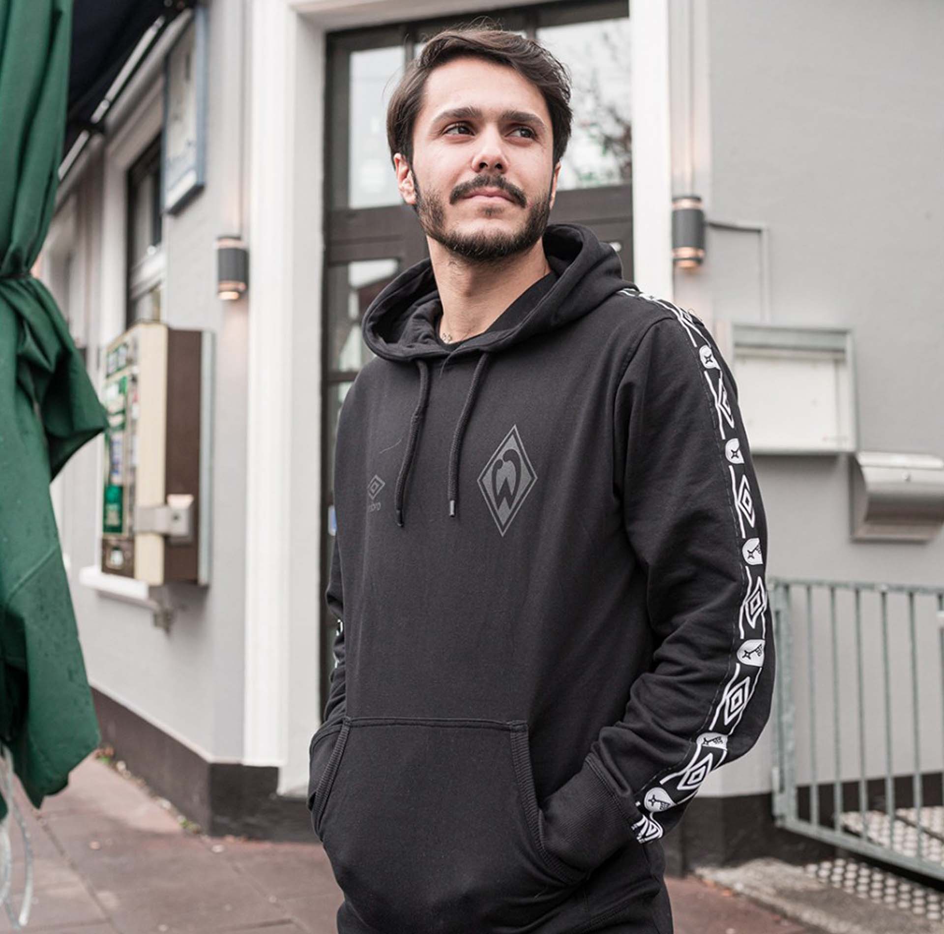 La Collezione Stealth include giacche, hoodies, felpe, t-shirt e sweatpants, impreziositi dai dettagli Umbro. I pantaloni e la felpa sono gli unici capi della capsule che abbandonano il look nero su nero, presentando una banda laterale caratterizzata dall’iconico double diamond bianco che si ripete per tutta la lunghezza della gamba e della manica. Entrambe le collezioni - lanciate in collaborazione con Outfitter, un negozio tedesco specializzato nella vendita di articoli sportivi – differiscono poi per altri due elementi, ancora una volta connessi alle radici delle due città: la collezione dello Schalke, in alcuni capi, presenta i due martelli incrociati che celebrano il profondo legame del club con la storia dell'estrazione del carbone della Ruhrgebiet, mentre quella del Werder è stata lanciata attraverso il claim ‘wagen un winnen’ (letteralmente ‘osare e vincere’), in riferimento a un motto ideato da Otto Gildemeister, sindaco di Brema a metà ‘800.