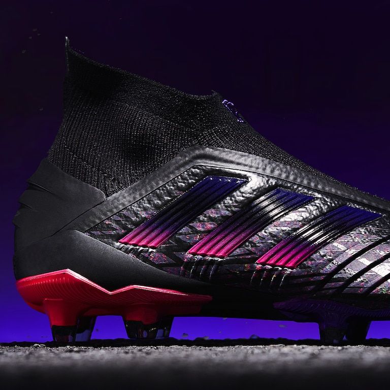 Pezzo forte dell'intera collezione sono invece le Predator, la linea leggendaria lanciata da adidas a fine anni '90 e riproposto di recente nel modello Mania del 2002, in occasione del 25° anniversario dalla prima release. Le nuove signature shoes di Paul Pogba, blu con dettagli rosa sul tallone e suola, sono state realizzate con un filato "tinto nello spazio" come dichiarato dal brand, e si aggiungono alle colorway bianche e blu realizzate dal calciatore nelle scorse stagioni.
