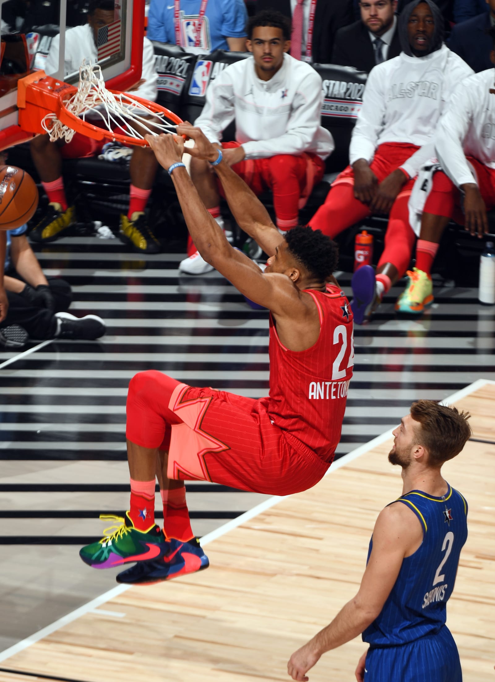 È stato senza dubbio l’ASG delle novità e dei cambiamenti, le stesse che ritroviamo ai piedi di diverse stelle. C’è chi opta per il vintage - come per esempio Kyle Lowry con le sue adidas Pro Model o Kemba Walker che rispolvera le Air Jordan 10 Retro “WINGS" - e c’è chi coglie l’occasione per lanciare delle scarpe nuove di zecca. È il caso dell’MVP di serata, Kawhi Leonard, che fa debuttare le nuove signature shoes di New Balance. Strada leggermente diversa quella percorsa da Trae Young, che sfodera le adidas N3XT L3V3L 2 'Ice Trae’, una versione personalizzata per una delle migliori point guard della Lega. Russell Westbrook, invece, non perde tempo e testa immediatamente la Jordan Why Not Zer0.3 "LA Born”, rilasciata proprio questa settimana. Doppia scarpa, invece, per LeBron James (Nike LeBron 17 "Monstars" & Nike LeBron 17 "Mr. Swackhammer"), per Giannis (Nike Zoom Freak 1 "Multicolor" & Nike Zoom Freak 1 "Employee of the Month”) e per Brandon Ingram (Adidas YZY BSKTBL & Adidas Pro Model).