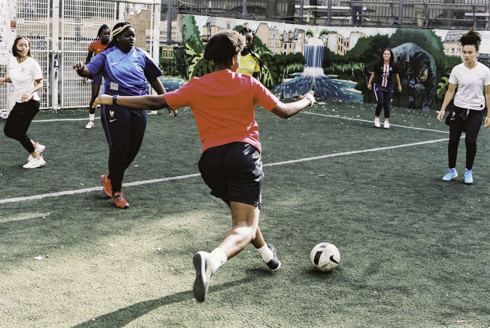 L: Quando sei un ragazzo di periferia, il più delle volte i due obiettivi principali che puoi avere per avere successo nella vita sono quello di essere un rapper o un giocatore di football. Personalmente penso che il divario sia dovuto dalla differenza di stipendio. Le ragazze che giocano non possono nemmeno immaginare di avere una carriera o di avere tanti soldi. È importante ricordare che il calcio era vietato alle donne in Francia dagli anni '40 agli anni '60/'70. La prima Coppa del Mondo femminile ufficiale ebbe luogo nel 1991! Quindi la storia spiega molto bene questo divario. E poiché la fama e il denaro non sono ancora accessibili alle donne, non sono motivi validi per giocare. Mentre per i ragazzi, i giocatori di calcio guadagnano milioni e milioni e sono superstar di fama mondiale. E questa può essere una motivazione per loro di giocare.