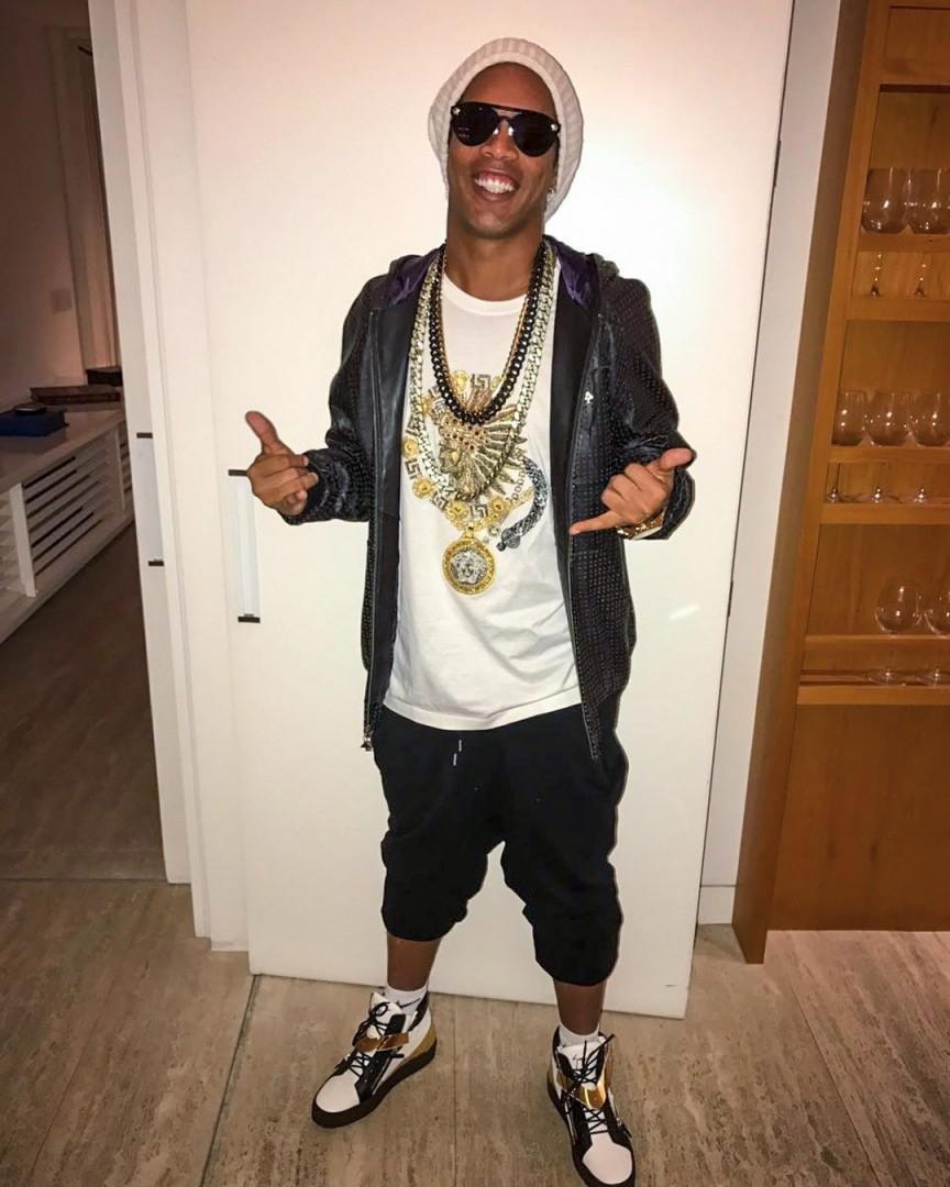 Ed è proprio per questo suo essere immaginifico che Nike, dopo avergli dedicato una delle ultime signature boots realmente associabili ad un singolo giocatore – le “R10” dal layout vintage e dalle cuciture laterali in rosso, arancione e giallo, a rappresentare, rispettivamente, la famiglia, la musica e la felicità – lo ha omaggiato con una vera e propria linea di abbigliamento personalizzata, sul modello dello streetwear pensato per le stelle del basket NBA. La connection non è casuale: “Dinho” è stato il primo calciatore a sdoganare quel tipo di star system con un modo di vestire più vicino alla cultura americana che a quella europea. E, quindi, polsini e headband a raccogliere le treccine modello Allen Iverson sul campo; maglie rigorosamente di due taglie più grandi (meglio se accompagnate da gigantesche e vistose collane d’oro), felpe con il cappuccio, bandane e snapback fuori, in una personale e innovativa reinterpretazione del fusione tra l’hip-hop e uno sport culturalmente e filosoficamente.