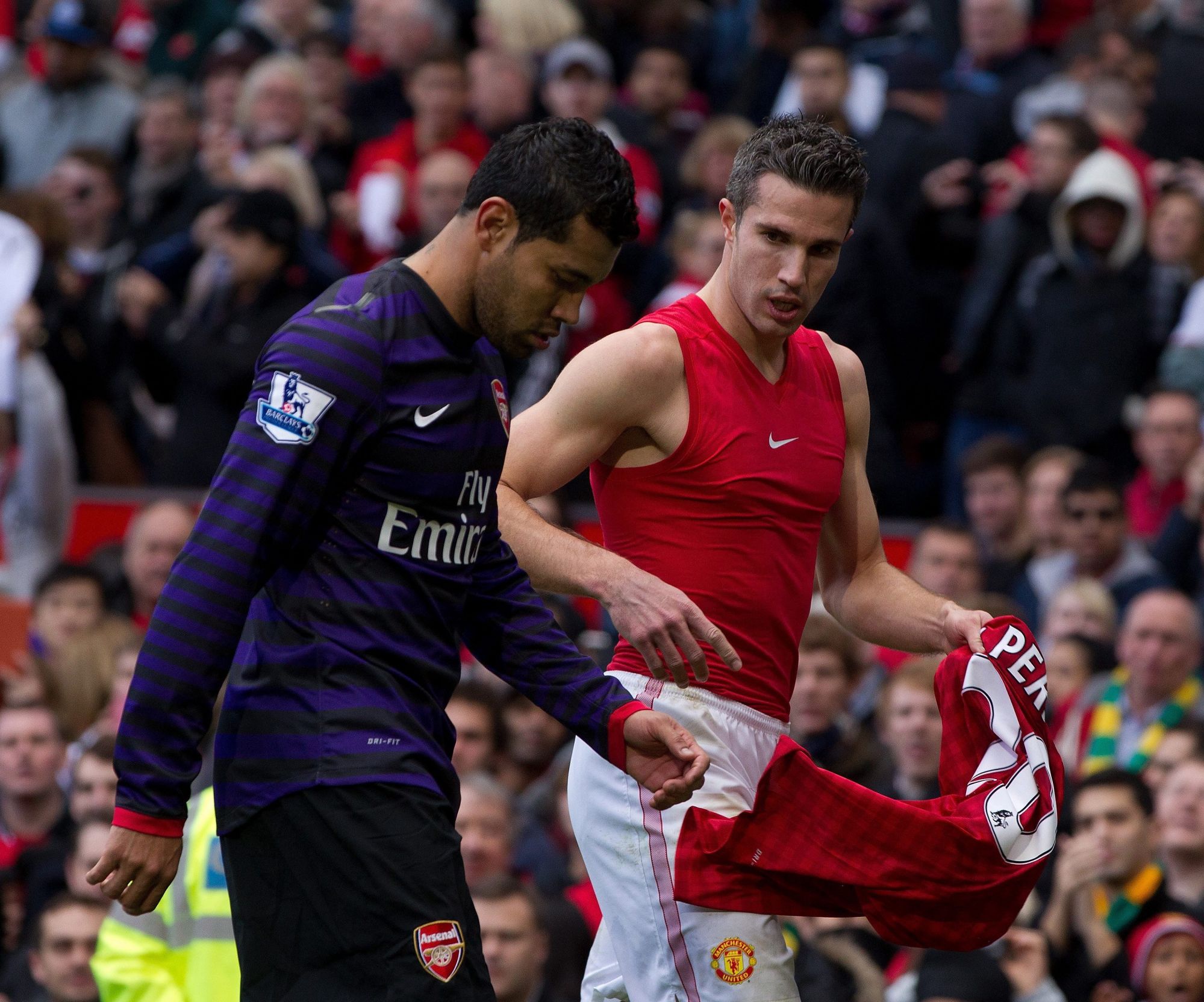 L'antagonismo tra Arsenal e Manchester United non è certo da meno. Per questo motivo i tifosi dei Gunners non reputarono una buona idea la scelta dell'esterno sinistro André Santos nel 2012 di scambiare la maglia con Robin Van Persie, passato l'anno prima ai Red Devils proprio dall'Arsenal. Ad attirare le ire dei tifosi fu la decisione infelice di Santos di chiedere - e ottenere - lo scambio durante l'intervallo, sotto gli occhi di tutti davanti al tunnel che porta agli spogliatoi. Di contro, rifiutare la maglia di una squadra rivale può voler significare gloria eterna agli occhi dei propri tifosi e lo sa bene Afriyie Acquah, centrocampista del Torino che al termine di un derby nel 2016 rifiutò lo scambio con lo juventino Bonucci, uno dei giocatori più bersagliati dai supporters granata. Qualche anno prima, in occasione della prima stracittadina dopo il ritorno in Serie A del Torino, alla fine del match Ogbonna aveva accettato la maglia bianconera di Marchisio, rompendo irreparabilmente il rapporto con i suoi tifosi.
