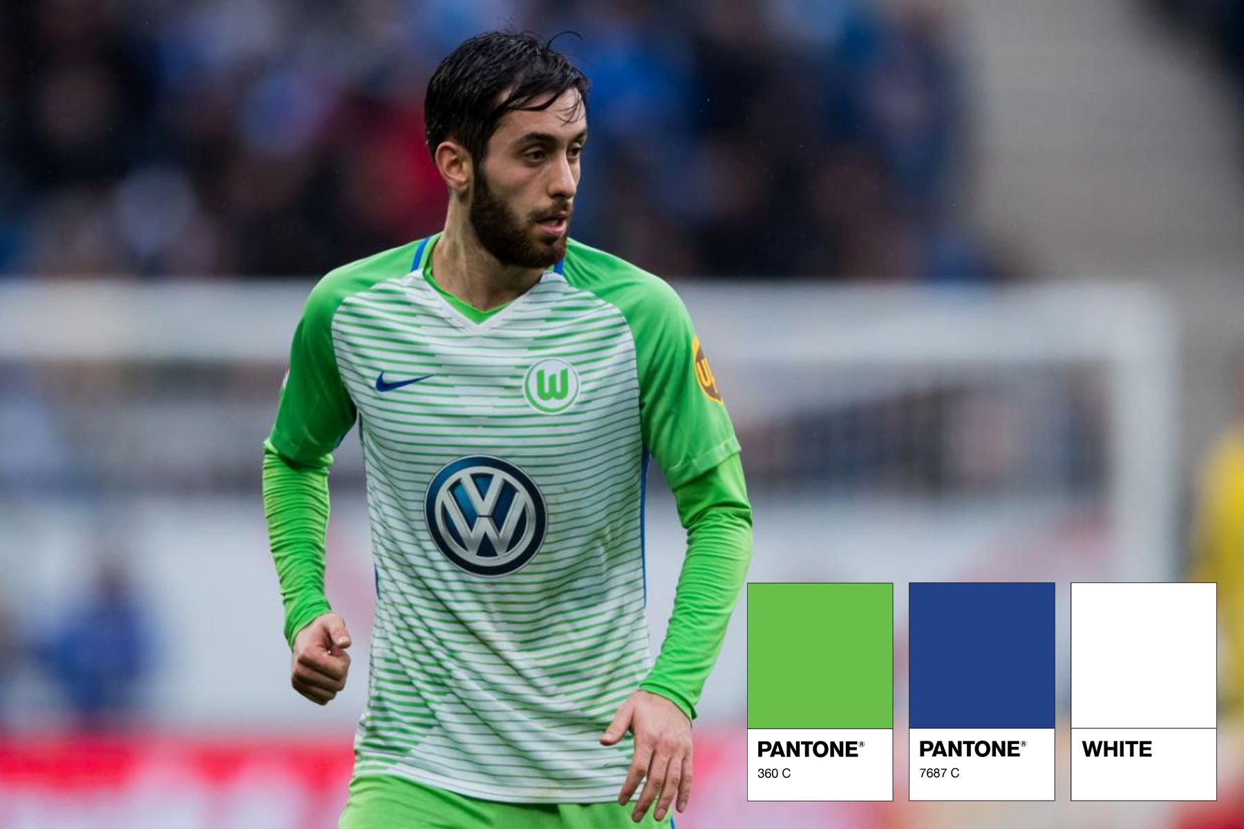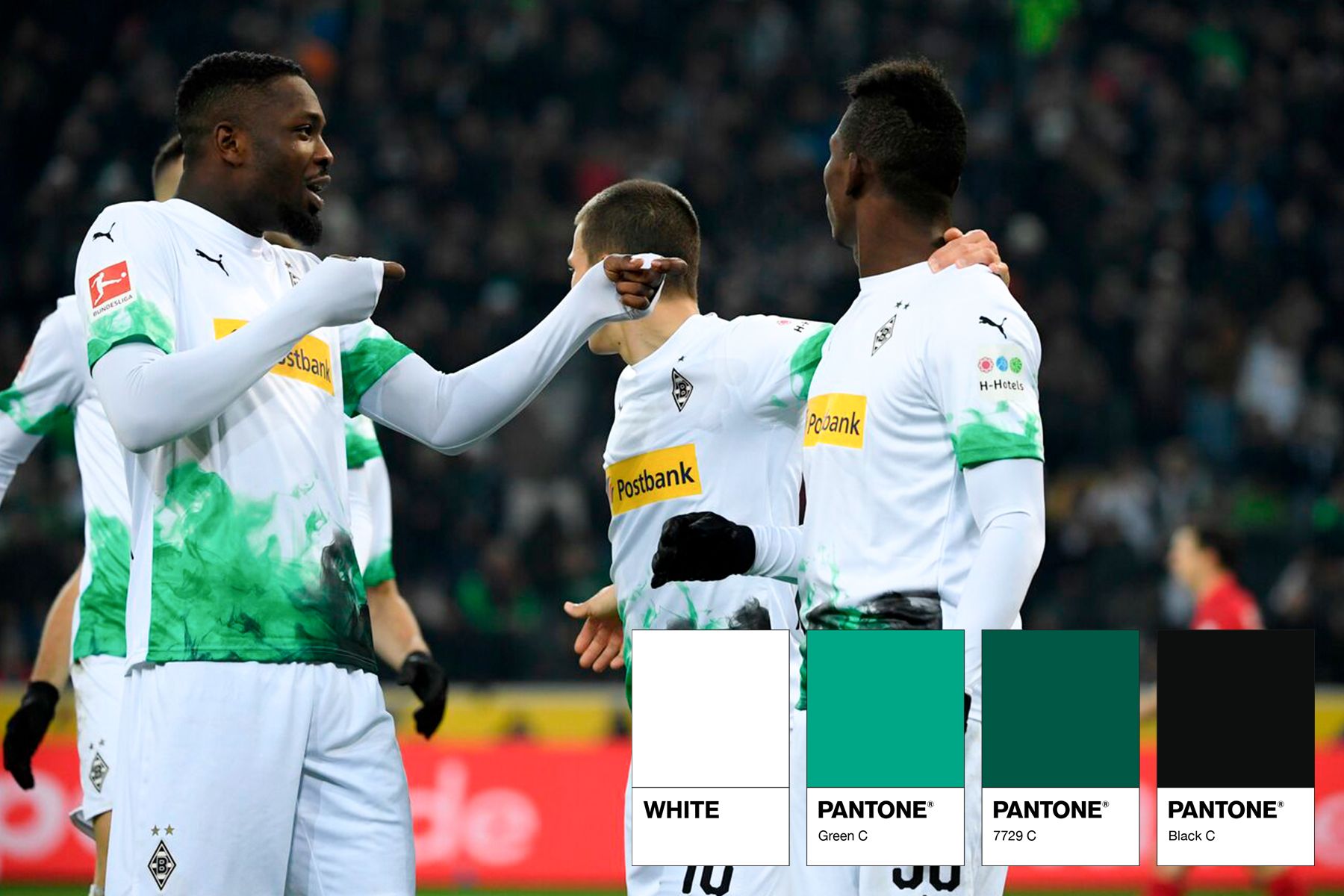 Kit 3: 2017-18, first kit; Pantone 3: 360 C, 7687 C, White