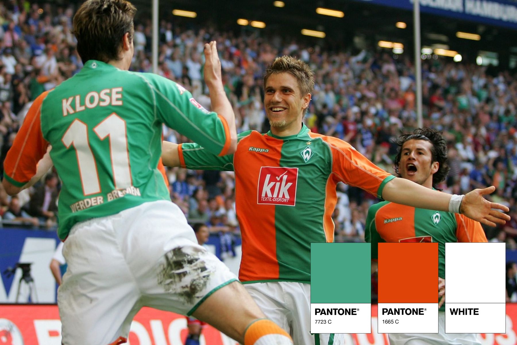 Kit: 2005-06, first kit; Pantone: 7723 C, 1665 C, White