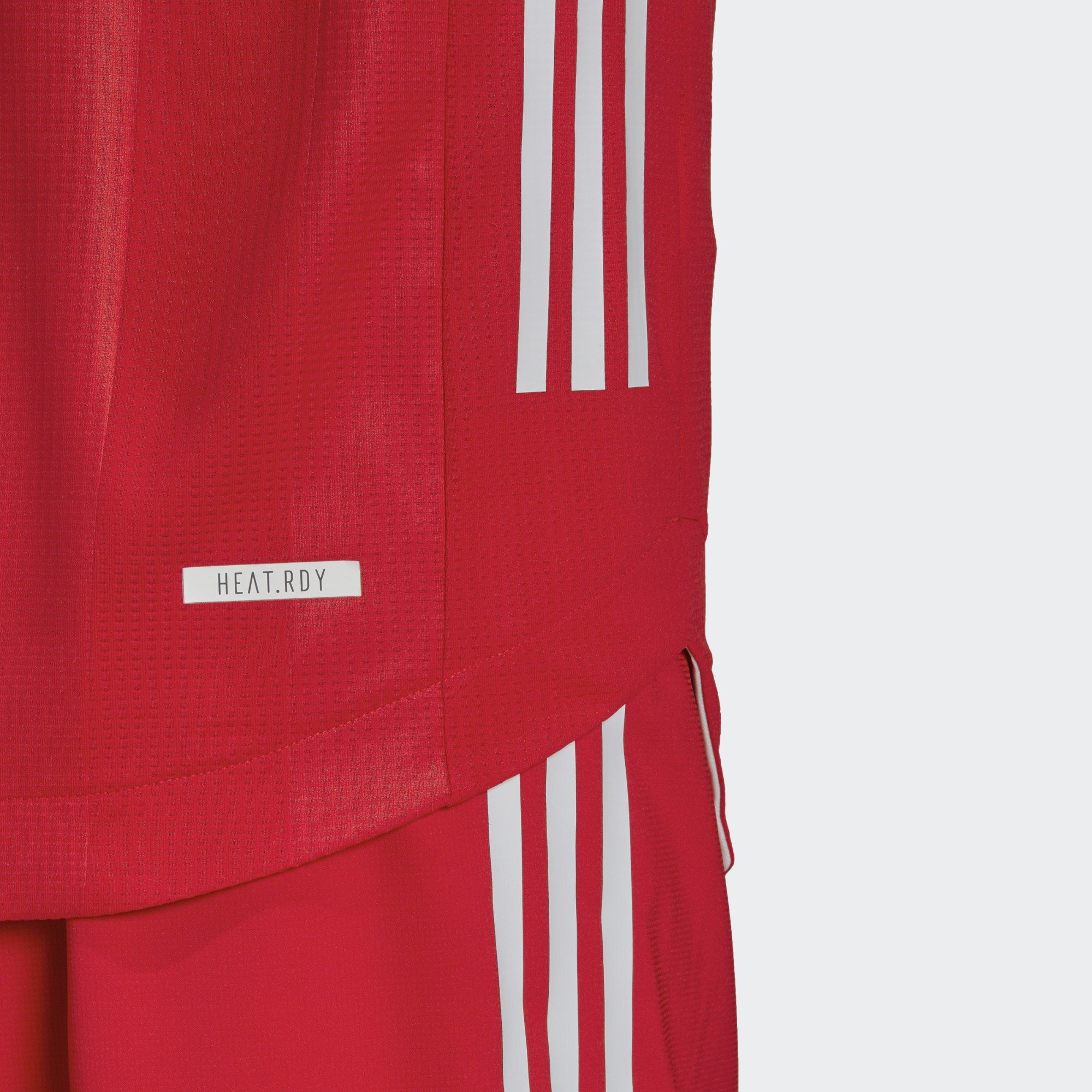 Si tratta di un design molto semplice e raffinato che ricorda vagamente quello già visto durante la stagione 2016/2017, quando al total red, adidas aggiunse uno stiloso colletto, l'orlo delle maniche e le tre strisce laterali in bianco.