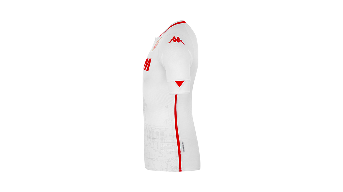La terza maglia del club monegasco si muove proprio in questa direzione, decorando la KOMBAT ™ PRO con le sagome di alcuni dei luoghi più celebri della città: dalla chiesa di Sainte Dévote al monumento di François Grimaldi, fino ovviamente allo Stadio Louis II. Infine il rosso che impreziosisce alcuni dei dettagli della jersey, dal celebre logo Kappa al colletto su cui campeggia il motto “Deo Juvante”.