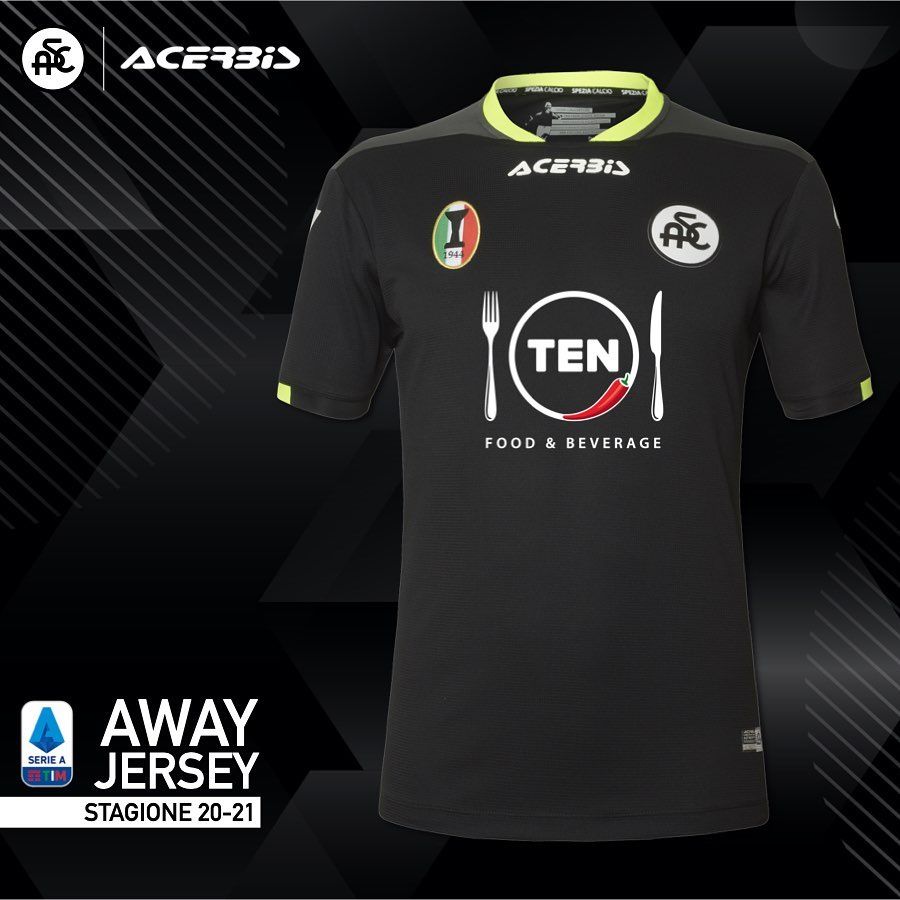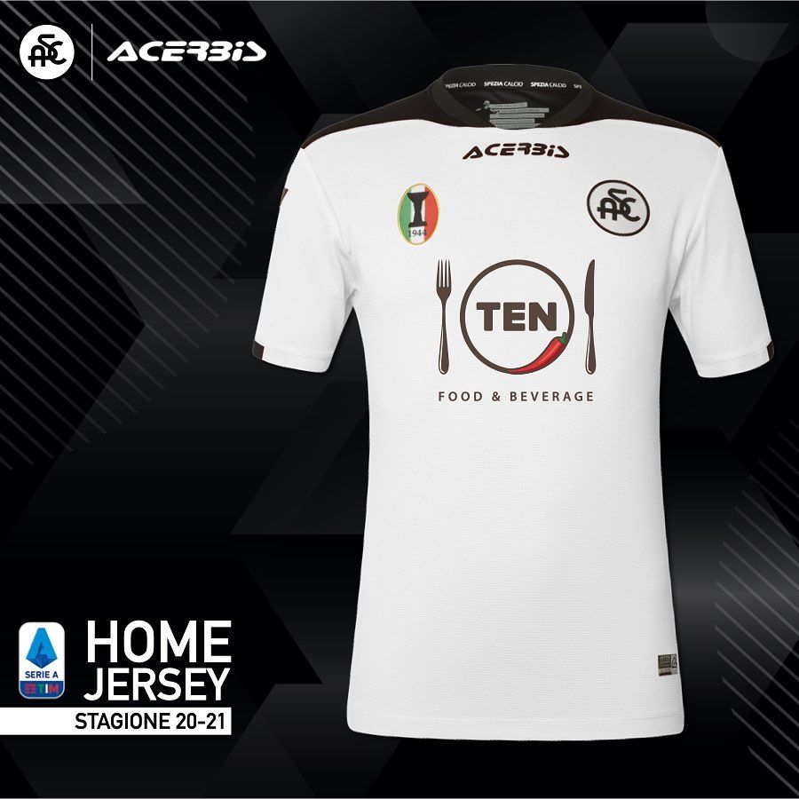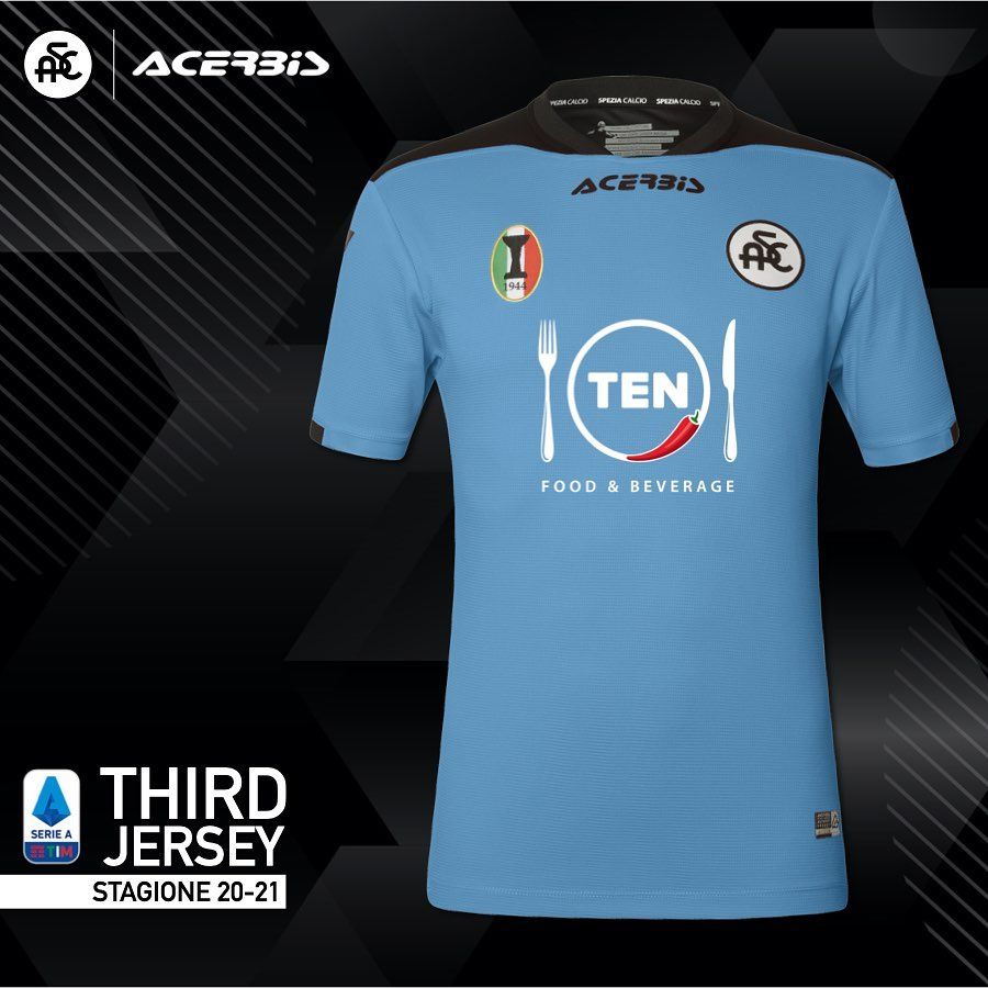 Però, la prima neopromossa a presentare le proprie divise è stato lo Spezia, che la settimana scorsa ha rilasciato i tre kit della prima storica stagione in Serie A. Storica come la prima volta del partner tecnico, Acerbis, brand bergamasco noto per le sponsorizzazione di piloti e originariamente nato per la produzione di materiale automobilistico. Per vestire lo Spezia sui campi di A, Acerbis ha realizzato tre divise rispettando i colori delle altre del passato: la prima bianca con spalle e colletto nere, la seconda interamente nera, la terza tuta azzurra. Il design è molto standard e, su tutte e tre le maglie, a spiccare sono le forchette del logo del main sponsor 'Ten'.