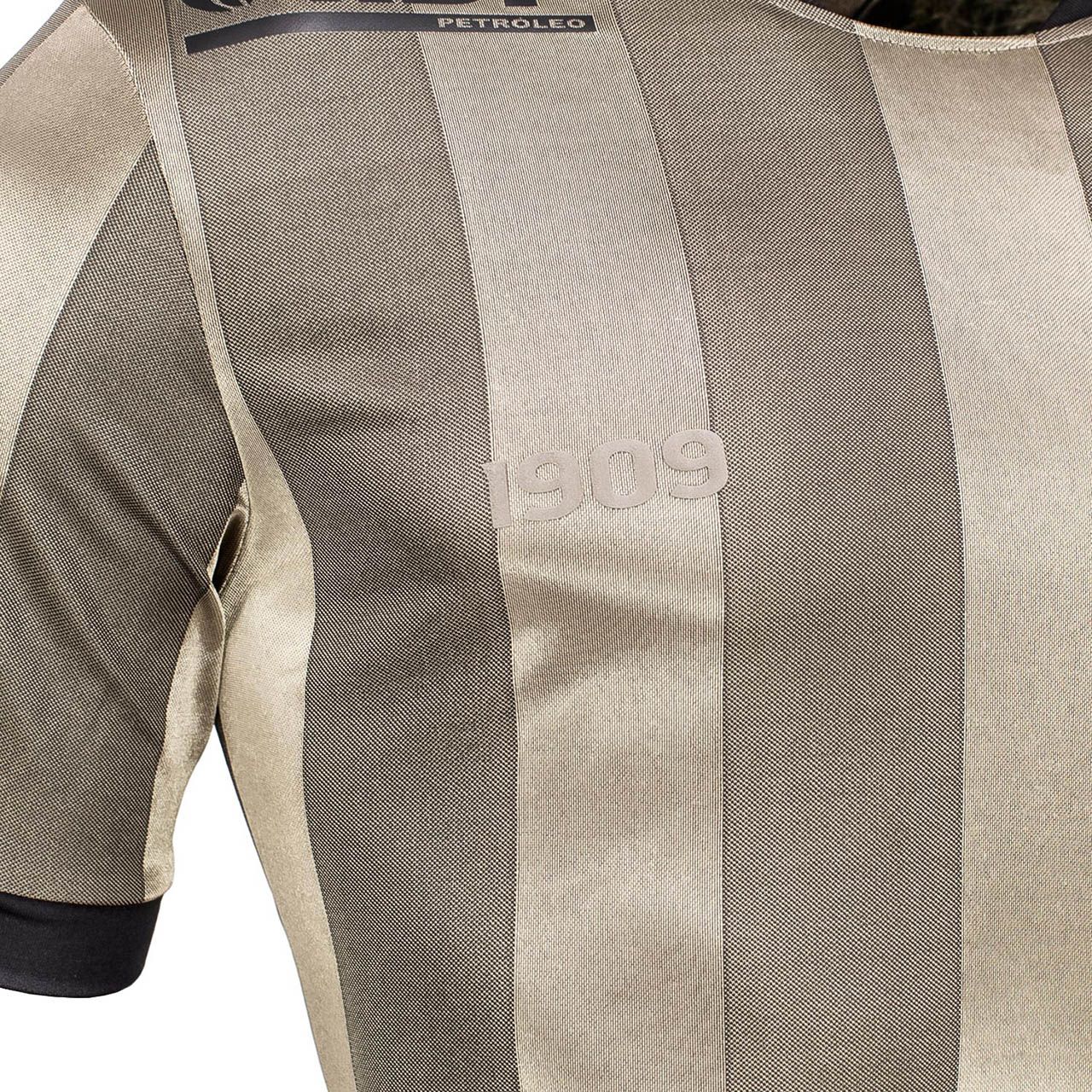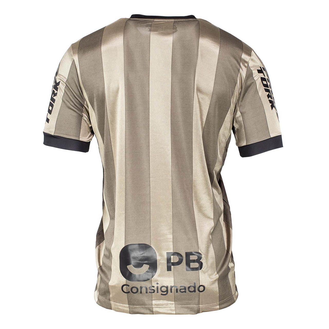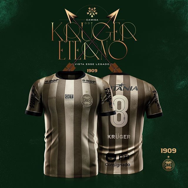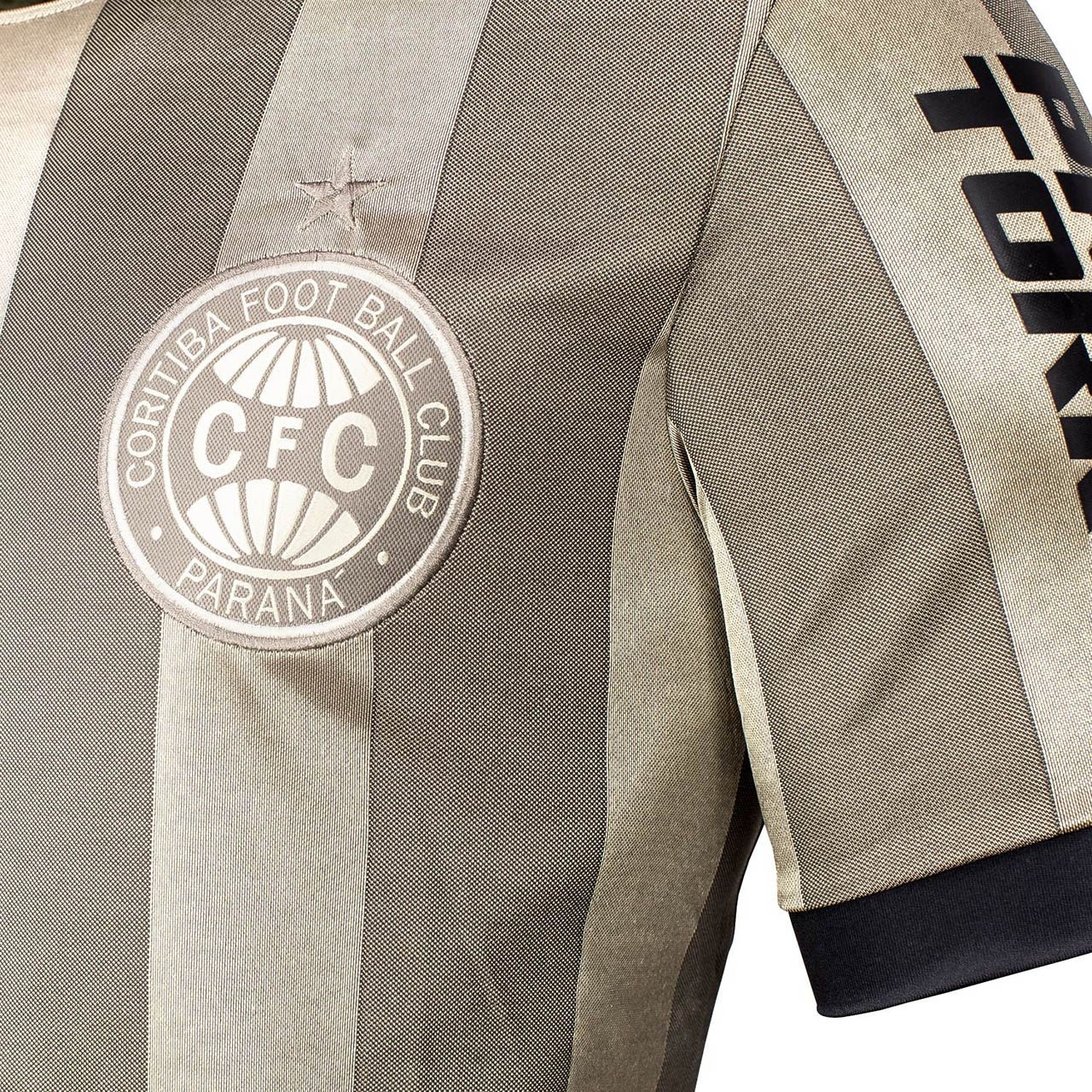 La particolarità di questa terza divisa sono i colori: il pattern è composto infatti da strisce in oro e bronzo, con il simbolo del club e il marchio del brand del club - 1909 - sono rispettivamente d'oro e di bronzo. In nero, ci sono i bordi delle maniche, il colletto a girocollo e gli sponsor sulle scapole e le maniche. La terza divida del Coritiba sarà vestita dai calciatori del club a partire da ottobre, durante il Brasileirao in corso, e tra l'altro, sarà possibile acquistarla in prevendita a un prezzo ribassato fino al 12 ottobre, il giorno del compleanno del club di Curitiba.