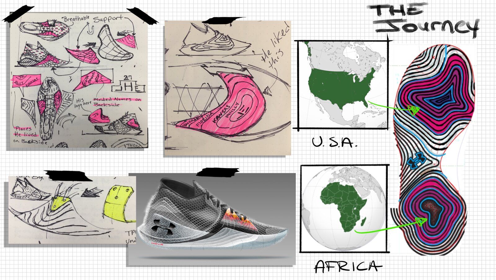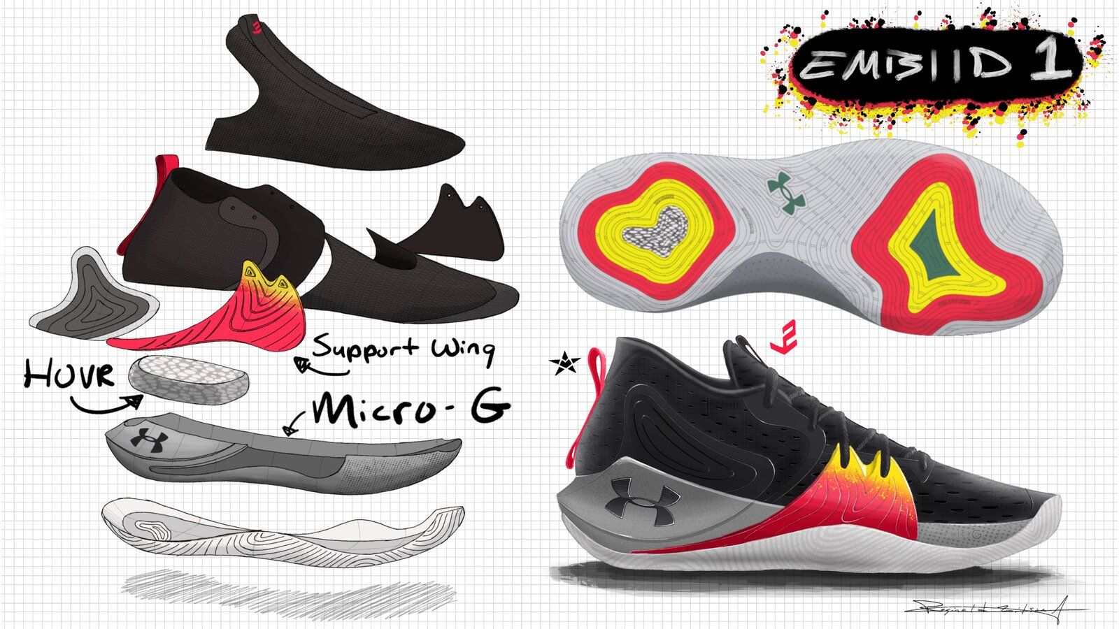Dalle foto dei progetti si comprende perfettamente quanto lavoro di ricerca, di innovazione e di estetica ci sia stato dietro la nuova edizione delle Embiid One, disponibili in tutto il mondo a partire dal 2 ottobre sul sito underarmour.com.