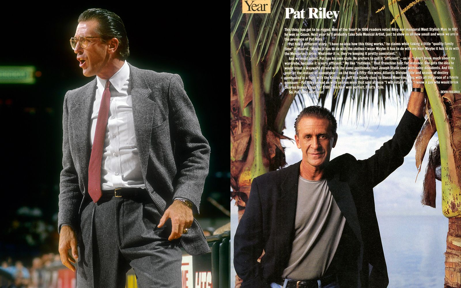 "Mentre nessun uomo ha assunto il ruolo privilegiato di ambassador pagato da Armani, Pat Riley è diventato il primo testimonial del brand. Il suo rapporto con Armani non è stato semplicemente di stima ma di vera amicizia e ammirazione. Indipendentemente dall'amicizia, i report indicano che Riley e sua moglie Chris ricevono abiti firmati Giorgio Armani del valore di $ 125.000 (al dettaglio) all'anno. L'80% del guardaroba di Riley è pieno di articoli delle collezioni del designer italiano. Nessun altro uomo ha beneficiato di una relazione così esplicitamente commerciale e duratura come Riley."