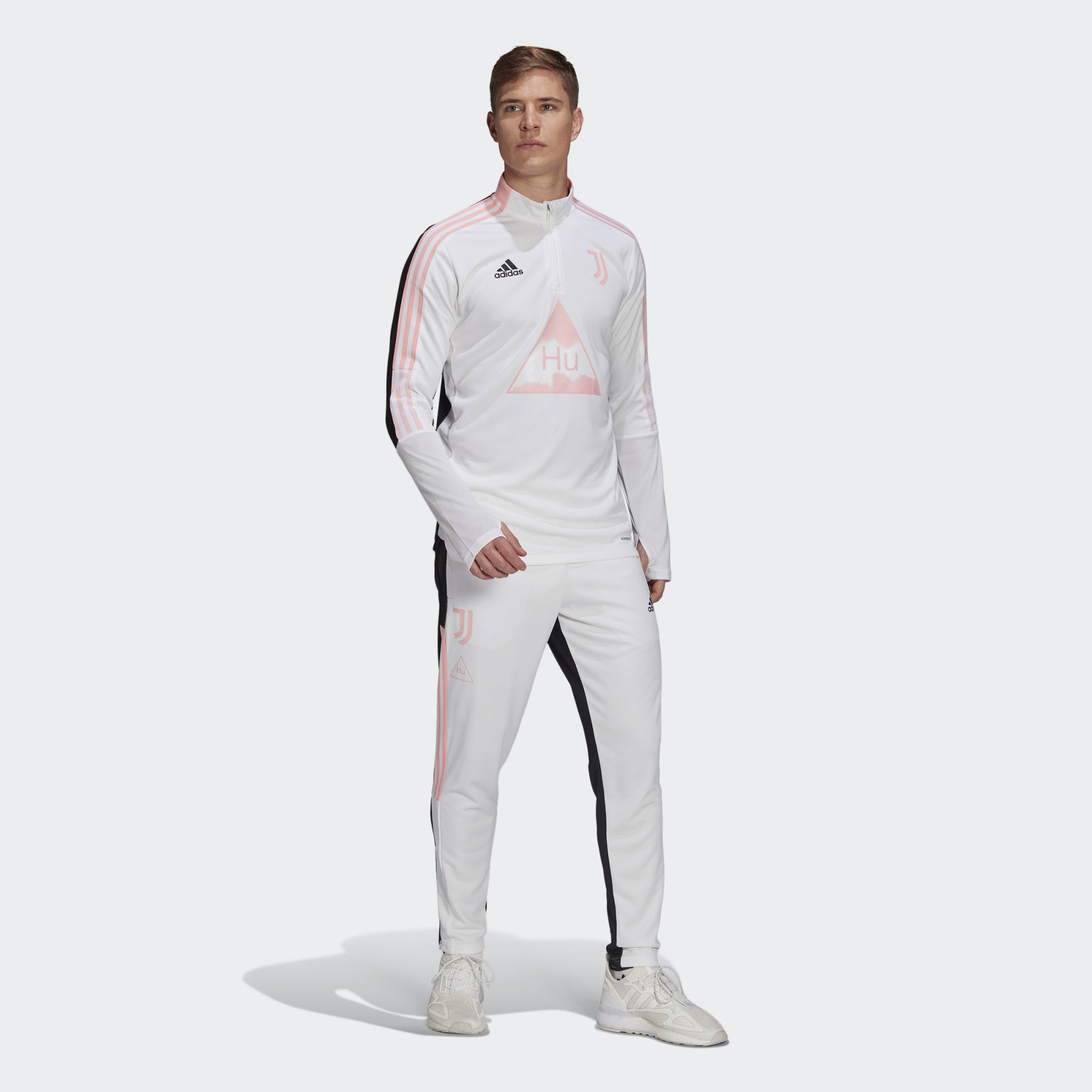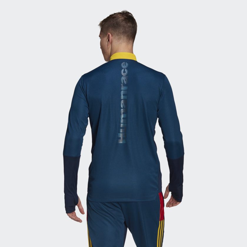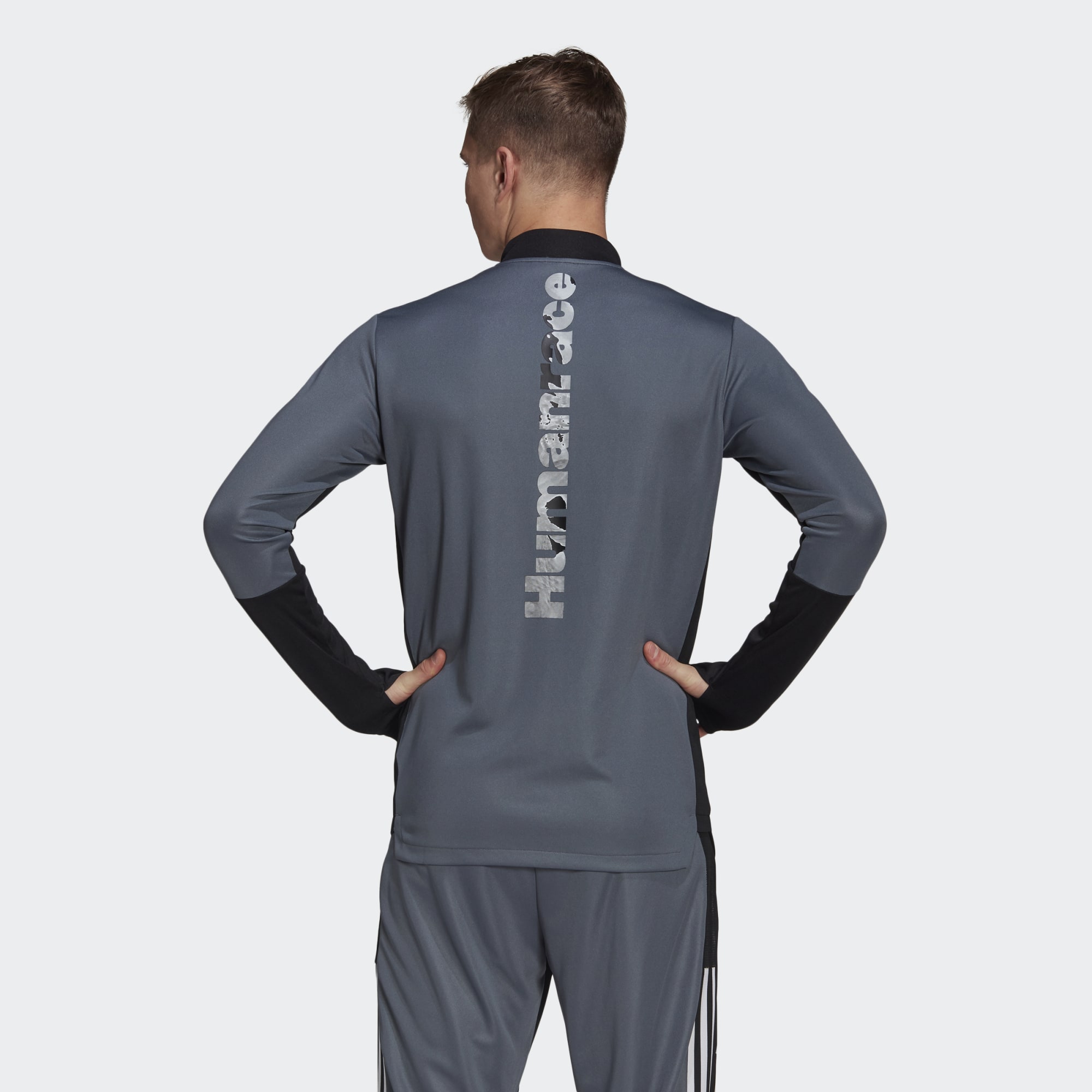 Tutte le felpe seguono i colori delle maglie, per cui ogni club ha la sua palette di colori sia sulla maglia che sulla tuta. Al centro c'è il logo di Human Race e dietro, al centro e in verticale, la scritta Human Race. Su ogni tuta ci sono le strisce adidas lungo le spalle e le maniche ma solo fino al gomito, mentre come altre tute d'allenamento il modello ha una chiusura lampo fino al collo. La linea dei colori varia da tuta a tuta ma sono tutte accomunate dall'alternanza di colori fra lo stemma del club e il logo di adidas (ad esempio, la Juventus ha il logo adidas nero e lo stemma "J" in rosa). Sul polso c'è la ripresa per il pollice e in generale tutte le felpe sono realizzate con il tessuto Aeroready e con PrimeGreen, un materiale particolare che non prevede l'utilizzo di poliestere.