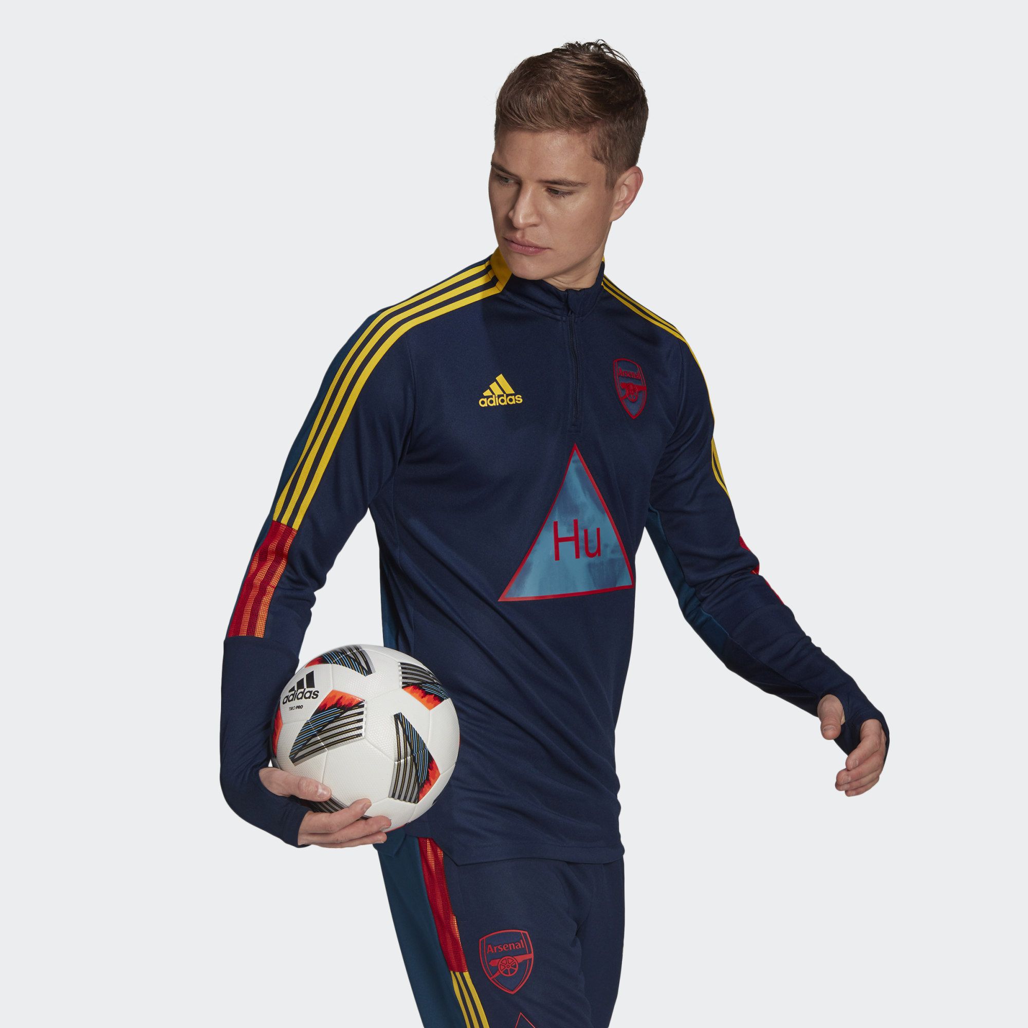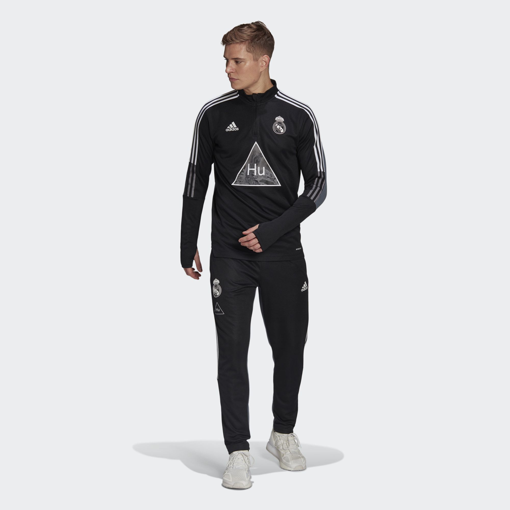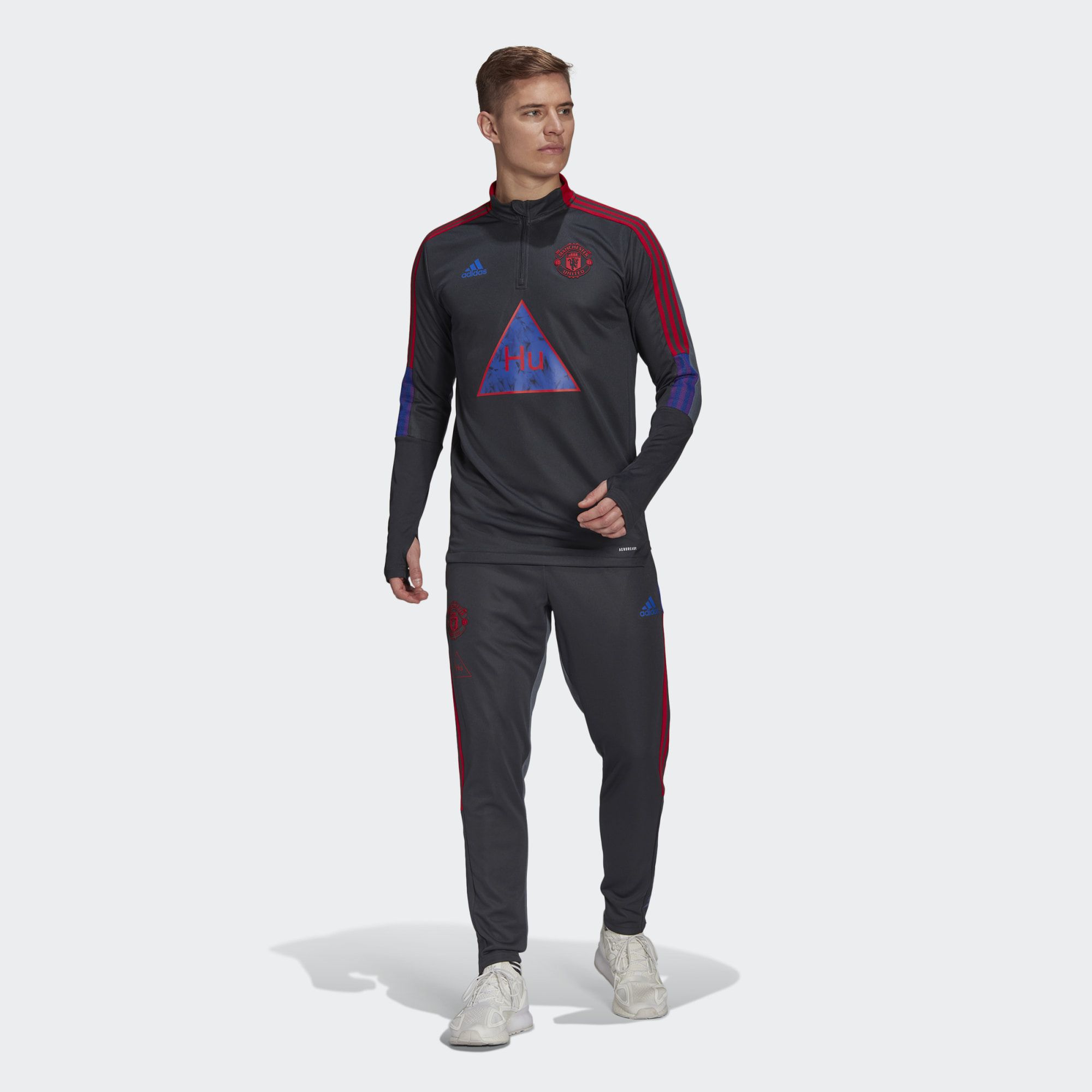 Tutte le felpe seguono i colori delle maglie, per cui ogni club ha la sua palette di colori sia sulla maglia che sulla tuta. Al centro c'è il logo di Human Race e dietro, al centro e in verticale, la scritta Human Race. Su ogni tuta ci sono le strisce adidas lungo le spalle e le maniche ma solo fino al gomito, mentre come altre tute d'allenamento il modello ha una chiusura lampo fino al collo. La linea dei colori varia da tuta a tuta ma sono tutte accomunate dall'alternanza di colori fra lo stemma del club e il logo di adidas (ad esempio, la Juventus ha il logo adidas nero e lo stemma "J" in rosa). Sul polso c'è la ripresa per il pollice e in generale tutte le felpe sono realizzate con il tessuto Aeroready e con PrimeGreen, un materiale particolare che non prevede l'utilizzo di poliestere.