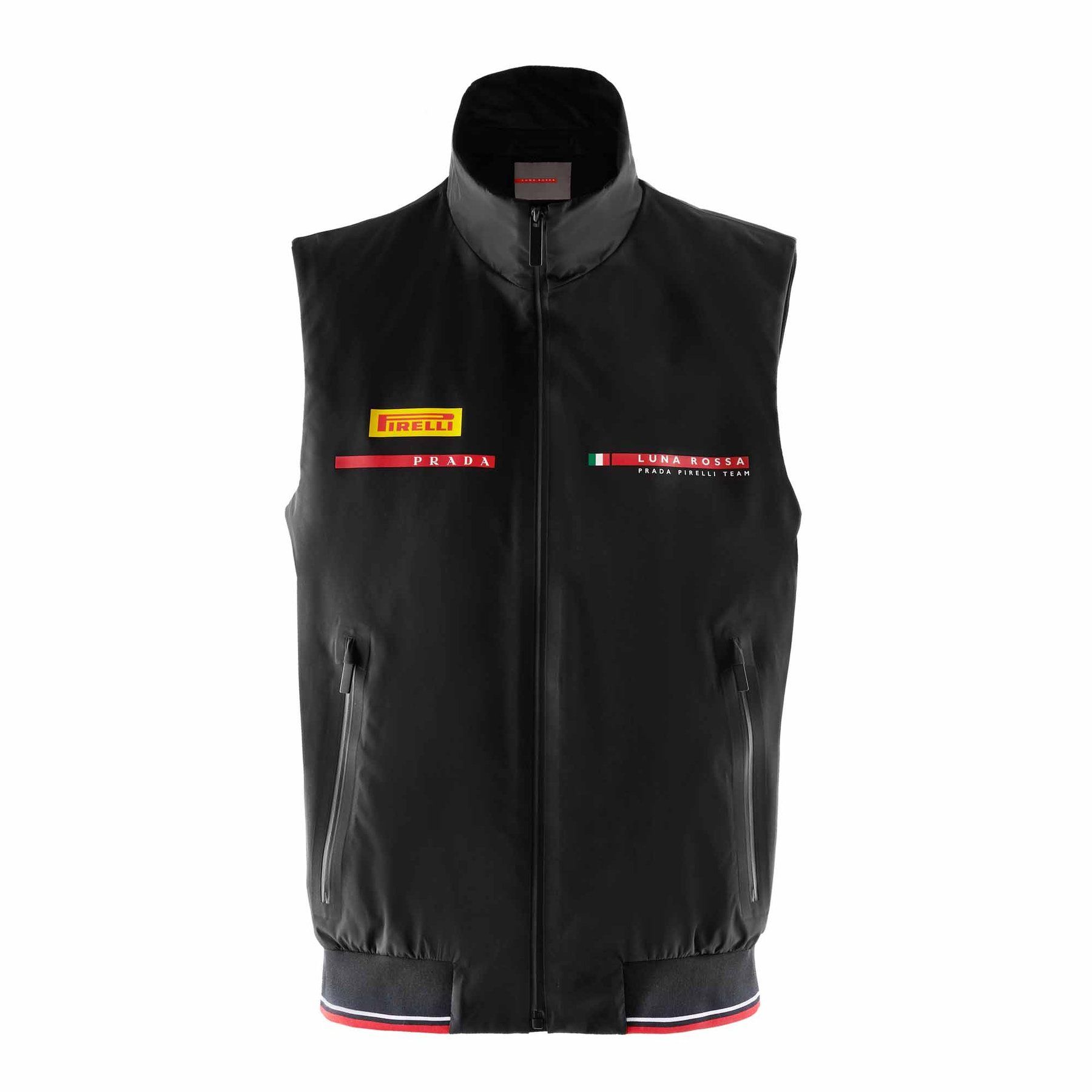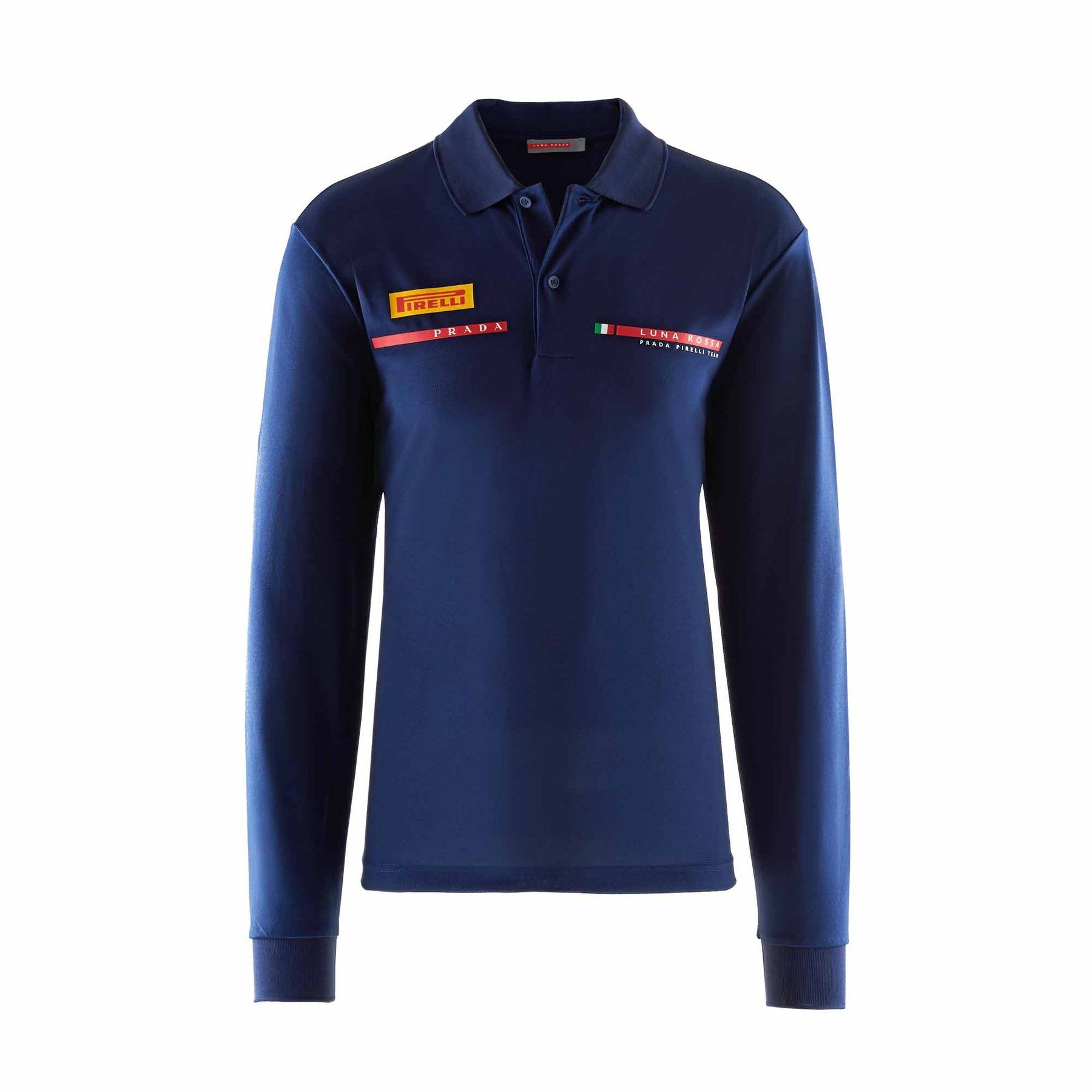Ogni capo - ad eccezione dei pantaloni, presenti nella collezione sia lunghi che corti - ha stampato a sinsitra i loghi di Pirelli e Prada e a destra quello di Luna Rossa. Il team italiano (che però ha sede a Valencia, in Spagna) è sponsorizzato da Prada fin dalla sua fondazione nel 1997, con Miuccia Prada madrina dell'inaugurazione del primo scafo. A settembre anche North Sails aveva presentato la sua collezione ufficiale per la prossima America's Cup, con molti capispalla e maglieria.