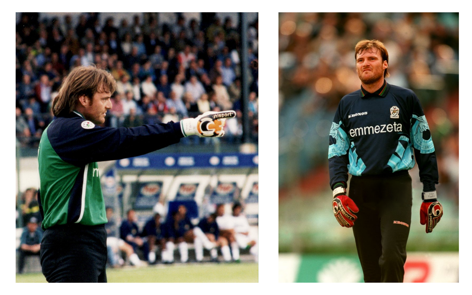 È il momento che segna l’inizio della terza fase della carriera di Taibi. Quella in cui non solo si attesta come portiere affidabile e di ottimo livello al netto della competitività delle squadre in cui gioca - Atalanta, Torino e Ascoli - ma anche come ambasciatore dei canoni estetici più iconici e riconoscibili del ruolo più difficile di tutti. Innanzitutto la maglia: sempre un po’ più larga del necessario, meglio se con il colletto in bella mostra e rigorosamente a maniche lunghe, che si tratti della calda primavera calabrese o del ben più rigido autunno inglese. Poi il pantalone: se con Piacenza e Milan si era piegato alla consuetudine dei pantaloncini corti (seppur molto attillati) nella mezza stagione a Venezia si passa al lungo, con le imbottiture all’altezza del femore e con i calzettoni tirati al di sopra.