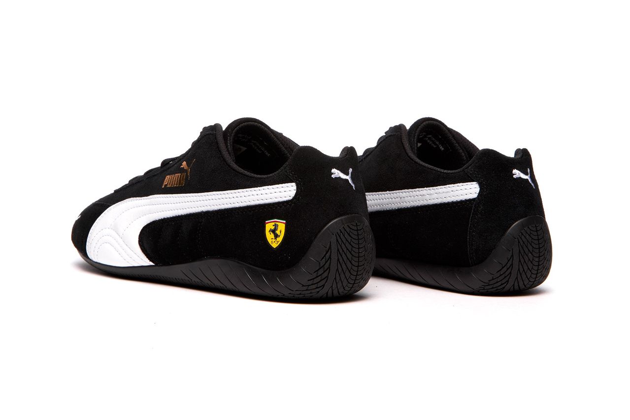 PUMA ha presentato la nuova edizione delle PUMA Speedcat in collaborazione con Ferrari, una sneaker storica che il cui primo modello è datato 1998. Disponibile nei modelli nero (PUMA Black) e rosso (Rosso Corsa) la linea è la stessa del modello classico resto famoso negli anni dai tanti piloti che hanno frequentato la scuderia di Maranello.