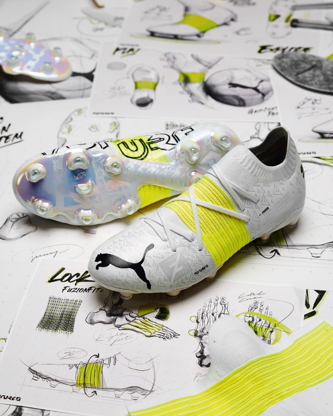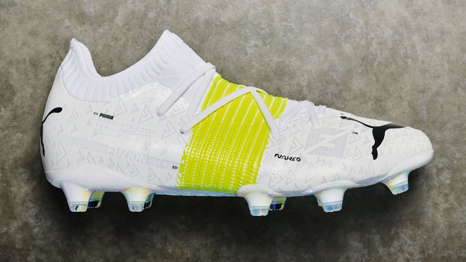 La scarpe è realizzata per offrire il massimo dell'aerodinamicità al giocatore, con una fascia di compressione FUNZIONFIT+ che permette al piede un'aderenza maggiore con il tessuto della livrea. La suola Dynamic Motion System a forma di Z garantisce invece un supporto sicuro e più stabile, così da favorire il movimento in velocità e il cambio di passo sul breve, anche grazie al sottile strato GipControl Pro che ricopre l'intera tomaia e migliora la sensibilità del tocco del pallone. Stilisticamente, le FUTURE Z 1.1 hanno una livrea bianca con una fascia composta da sottili linee giallo fluorescente, mentre sul lato interno della scarpa domina la scritta Neymar. Davanti, molto grande, c'è in nero il logo di PUMA.