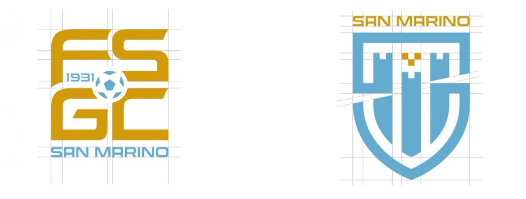 Rinnovare graficamente l'identità di Nazionale e Federazione, per San Marino, ha significato sviluppare un nuovo modello che sappia portare a nuove possibilità commerciali e di marketing. E ha deciso di farlo seguendo il binomio dell'accostamento di tradizione (con riferimenti alla Repubblica e al territorio) e un paradigma moderno (le nuove linee e una grafica creta ex novo). In pratica, un dialogo fra il retaggio e l'innovazione. L'esigenza di un nuovo logo, però, è nata anche dalla necessità di rinnovare la grafica del vecchio modello, secondo i vertici della Federazione incompatibile con le attuali esigenze commerciali. Dunque si è passati dal tradizionale logo circolare a dei modelli più minimalisti, più eleganti nel tratto, e che comunque, riportano i colori sociali della Federazione - il bianco e l'azzurro, il grigio e l'oro, il colore dello stemma della Repubblica. Per entrambi i loghi, VIVO ADV si è ispirata ai simboli della Repubblica di San Marino, il Monte Titano e le Tre Torri: nello stemma della Federazione campeggia l'acronimo FSGC intrecciato con la data di fondazione (tutto in giallo con le cifre in azzurro) in cui spicca anche, al centro, il pallone; mentre per il logo della Nazionale è stata scelta una forma a Scudetto con impresse le forme delle torri e le iniziali di San Marino (S e M).
