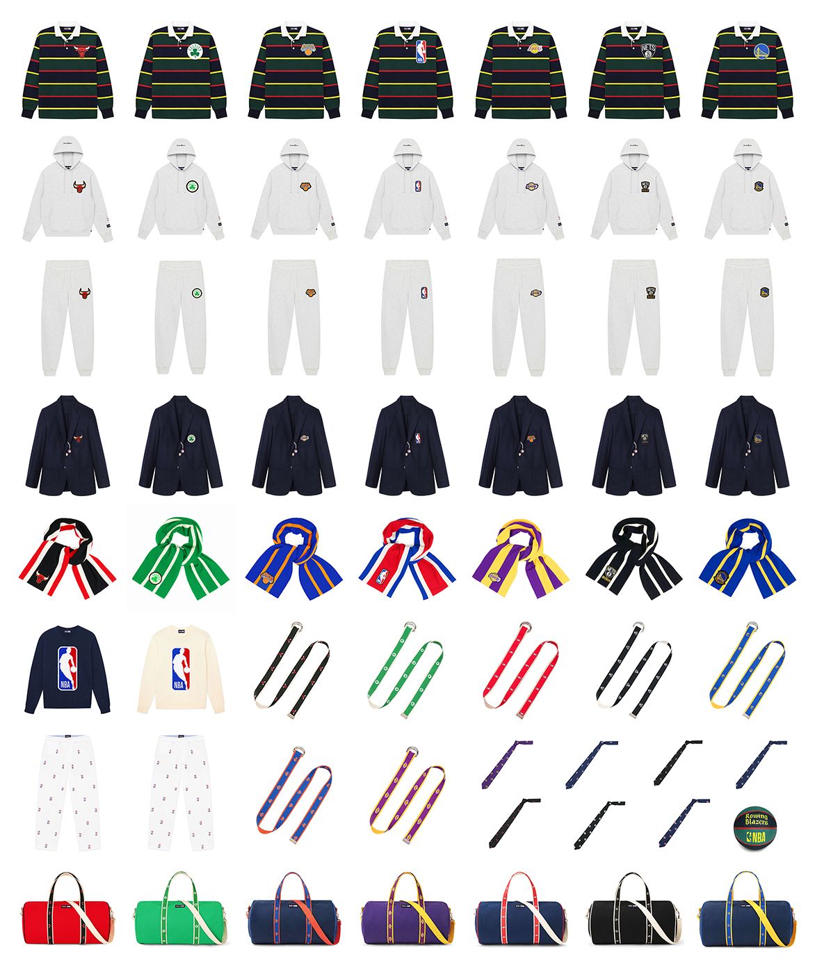 Camicie rugby, giacche, maglioni, pantaloni ma anche accessori com cravatte, cinture, borse e sciarpe: questi gli item della prima collezione Rowing Blazers x NBA, condita anche da un pallone Spalding con il doppio logo dei brand. Tutto catapultato nel 2021 direttamente dagli anni '70 e '80, con chiari riferimenti storici. Carlson, infatti, si fa trasportare dal magnetismo di MJ tanto da ricreare una copia quasi identica della sua stanza ai tempi di UNC per utilizzarla come set fotografico.